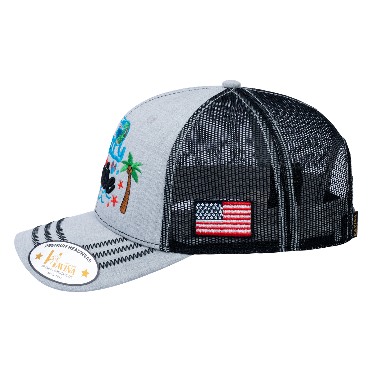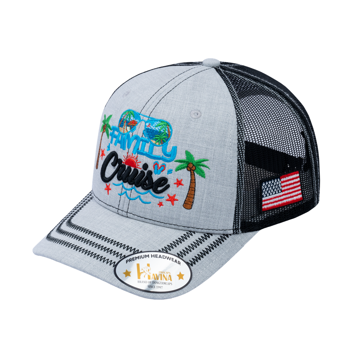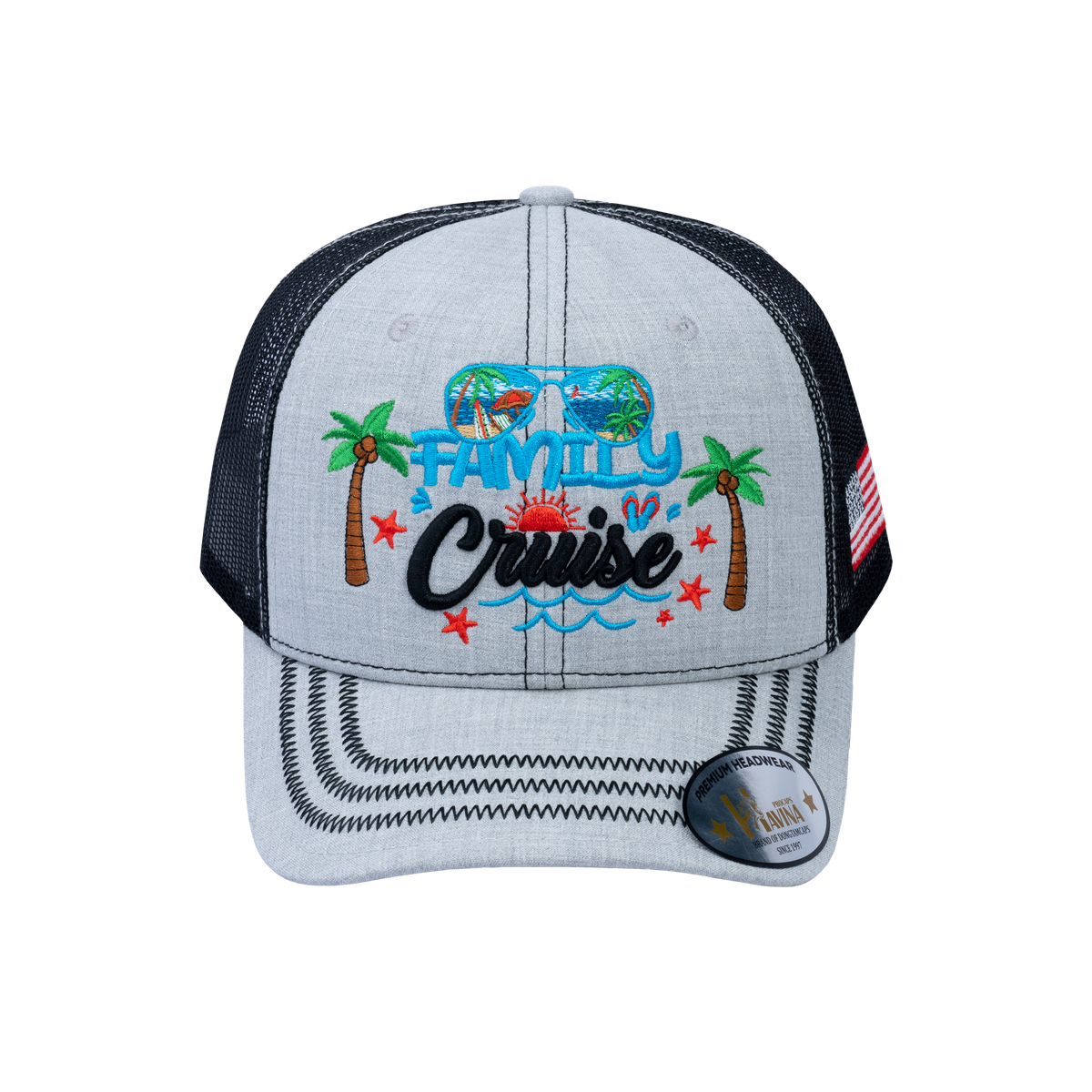 Embroidered Family Cruise - Traveling - 6 Panel Trucker Hat - Light Gray/Black - Zig Zag
