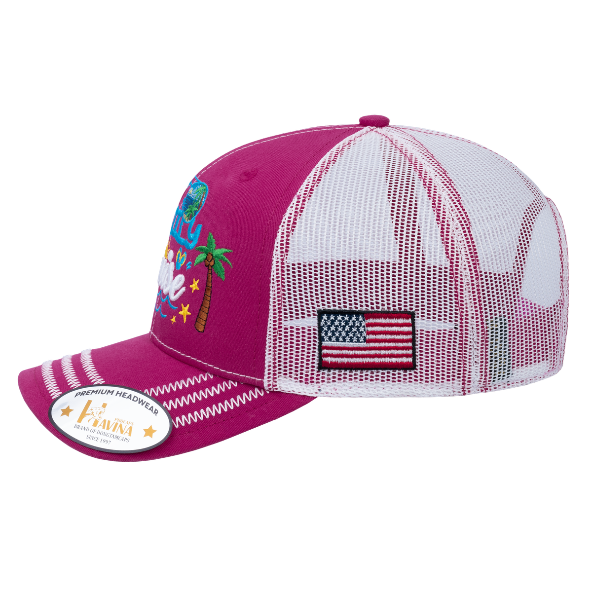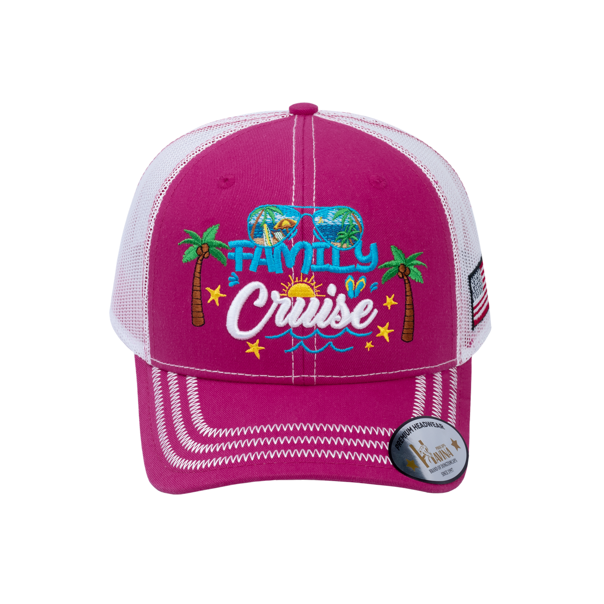 Embroidered Family Cruise - Traveling - 6 Panel Trucker Hat - Pink/White - Zig Zag