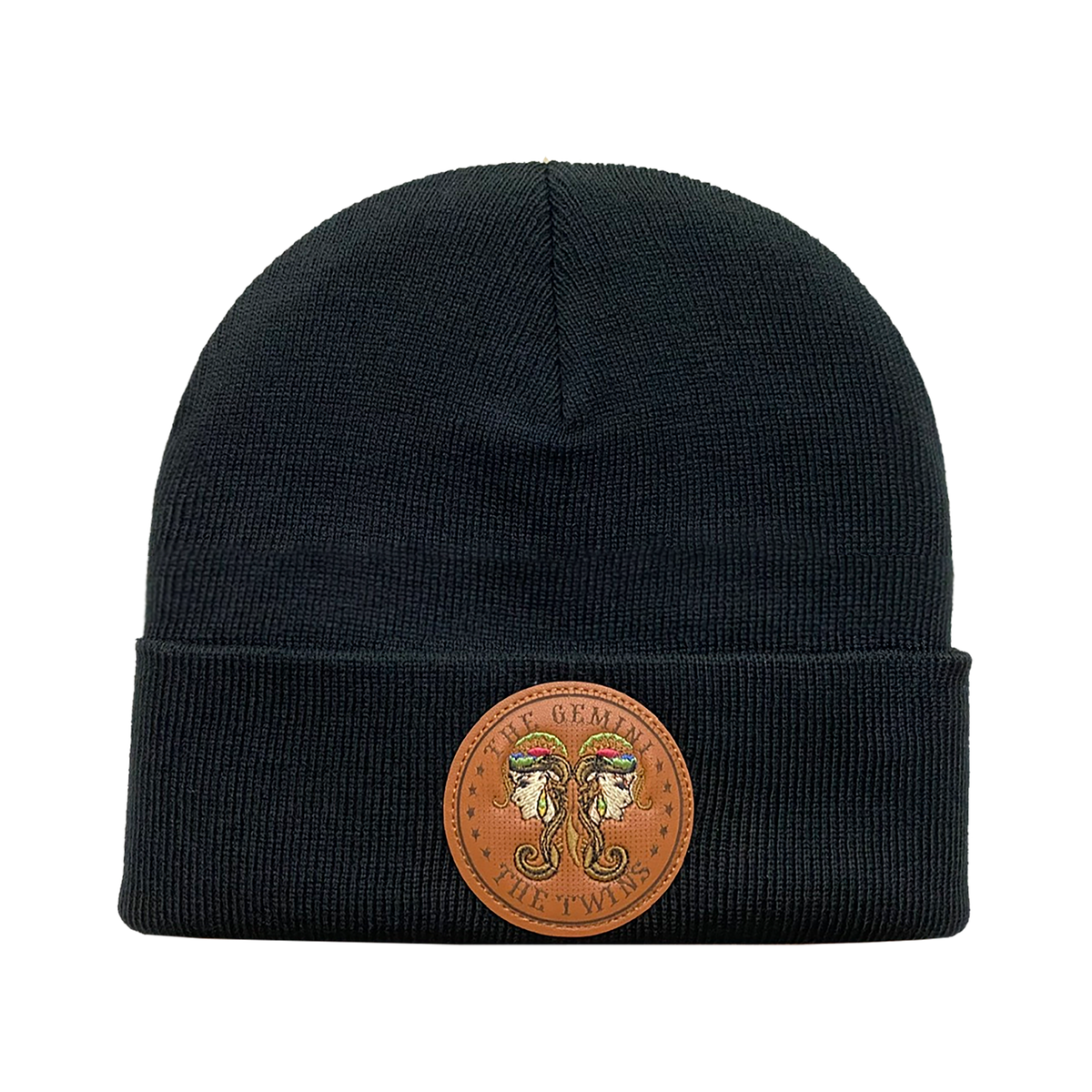 Embroidered and laser-engraved Gemini Zodiac (May 21 - June 20) - Knitted Soft Warm Unisex Beanie - Black