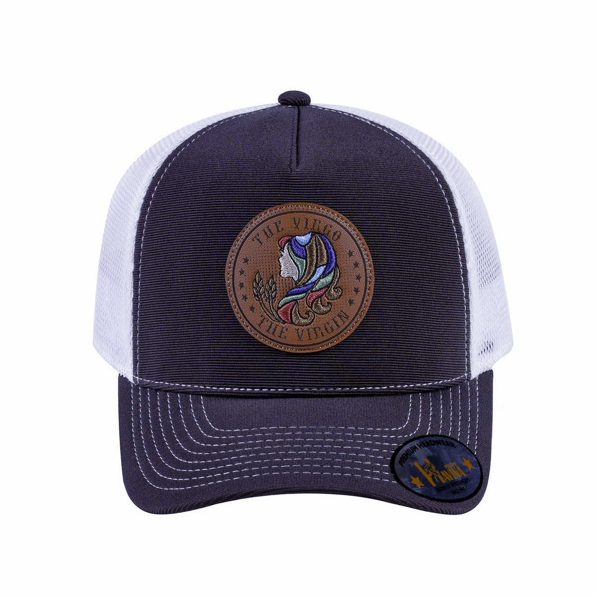 V2 Embroidered And Laser-Engraved Gemini Zodiac (May 21 - June 20) - 5 Panel Trucker Hat - Dark Grey/White