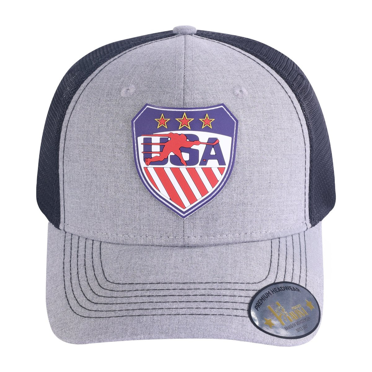 Embroidered US Loving Hockey - 6 Panel Trucker Hat - Khaki