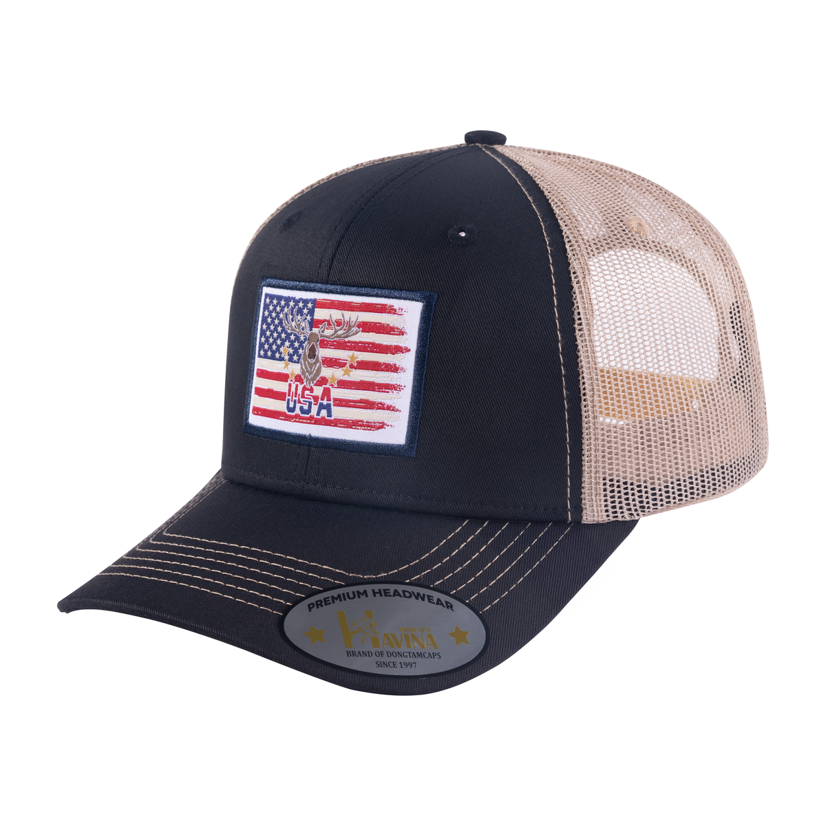 Embroidered US Deer Hunter - 6 Panel Trucker Hat - Dark Grey - Dark Gray-K11234Hs