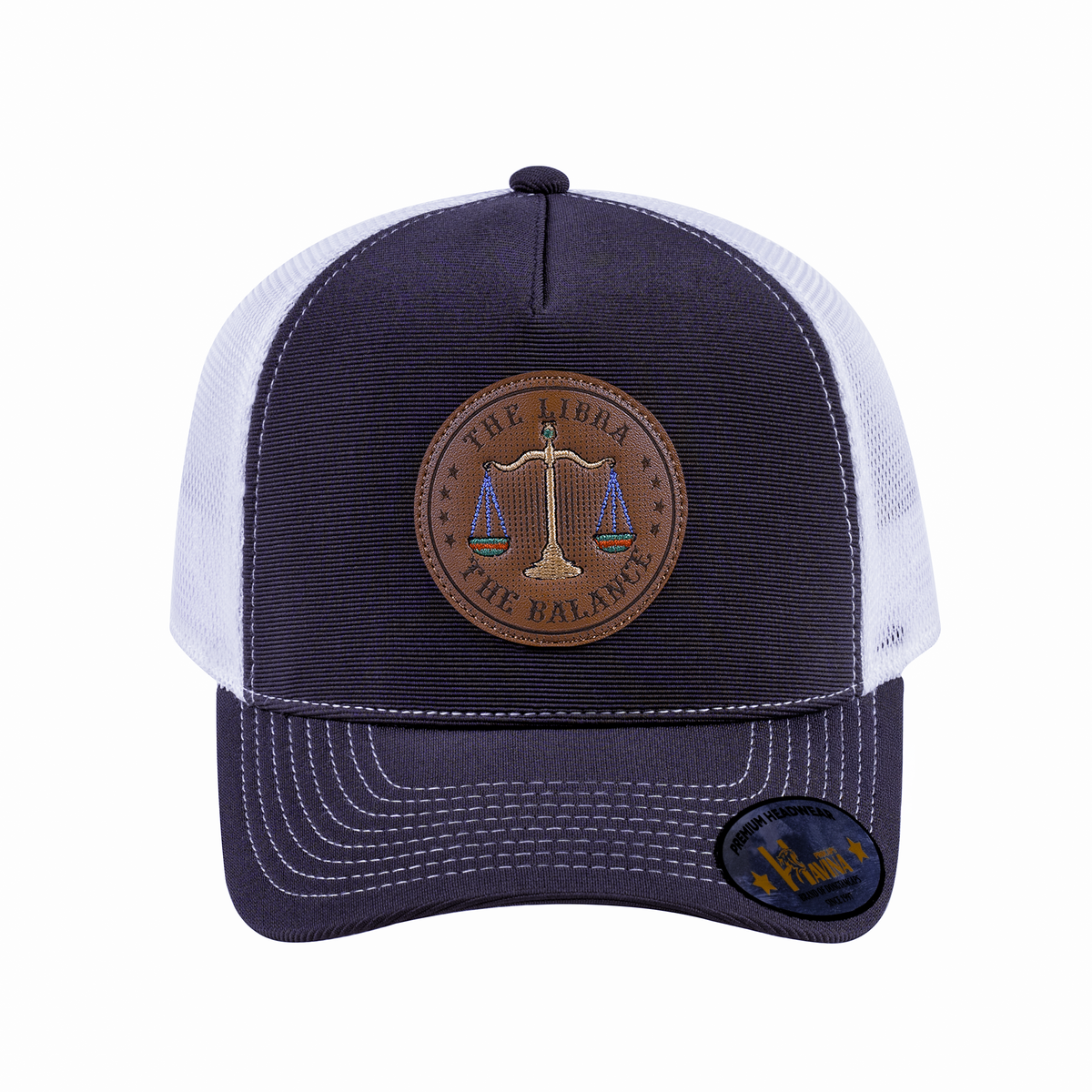 V2 Embroidered And Laser-Engraved Libra Zodiac (September 23 - October 22) - 5 Panel Trucker Hat - Dark Grey/White