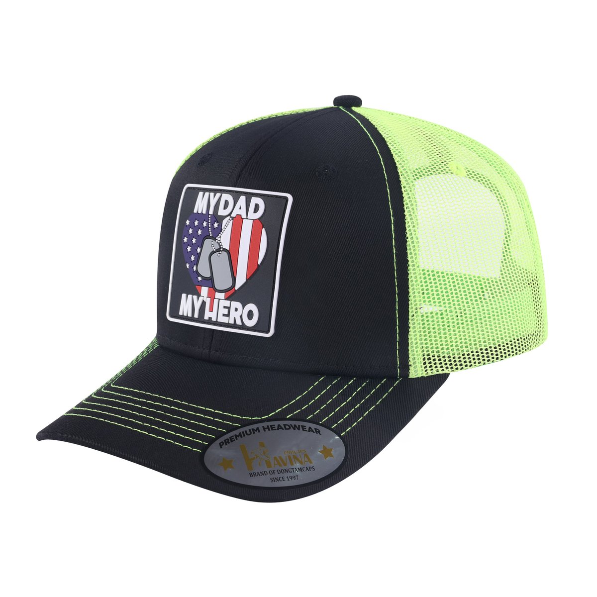 Embroidered My Dad My Hero - 6 Panel Trucker Hat - Black/Green