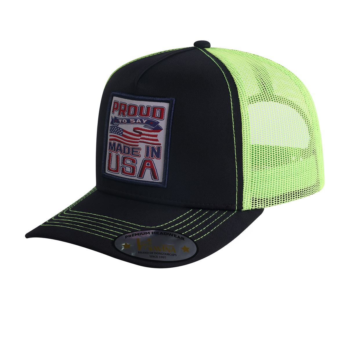 Embroidered Proud To Say Made In Usa - 5 Panel Trucker Hat - Black - Black-G11239