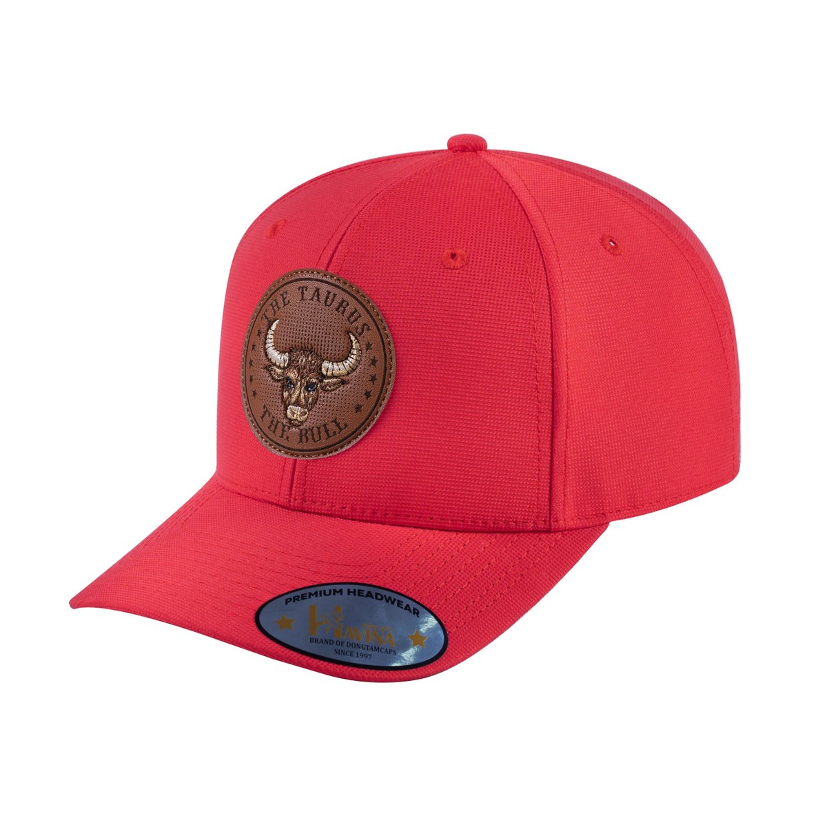 V2 Embroidered And Laser-Engraved Taurus Zodiac (April 20 - May 20) - 6 Panel Baseball Cap - Red/Red
