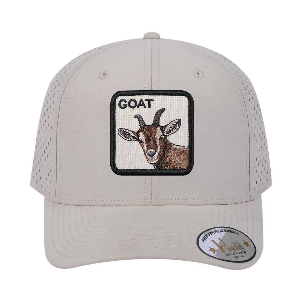 Embroidered The Goat - 6 Panel Microfiber Laser hole Trucker Hat - Beige/Beige