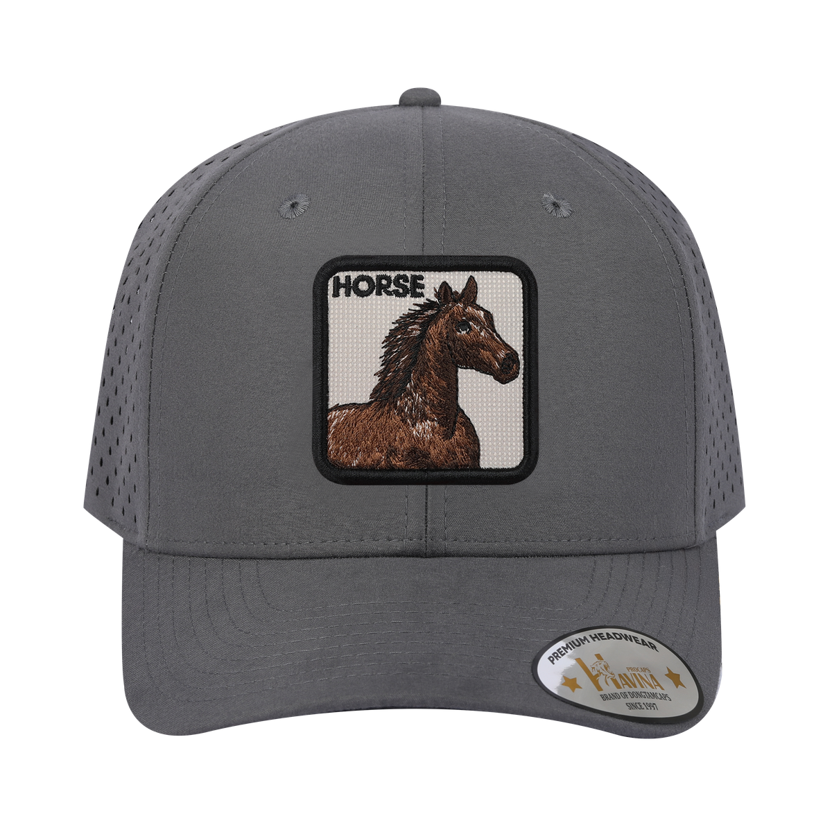 Embroidered The Horse - 6 Panel Microfiber Laser hole Trucker Hat - Grey/Grey