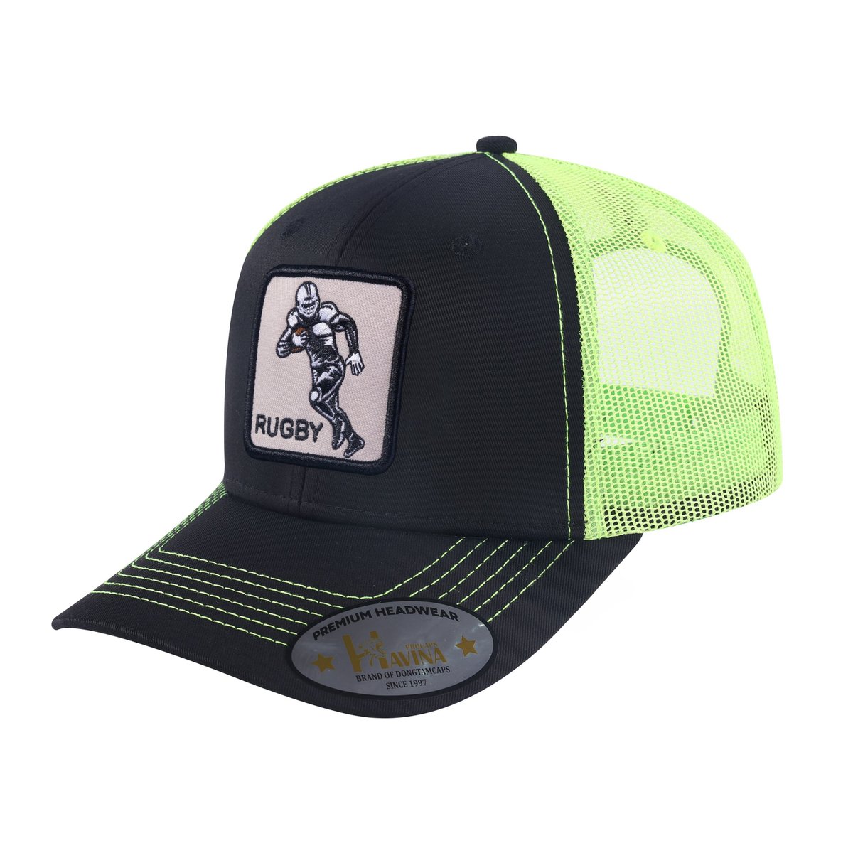 Embroidered Rugby/Football - 6 Panel Trucker Hat - Black/Green