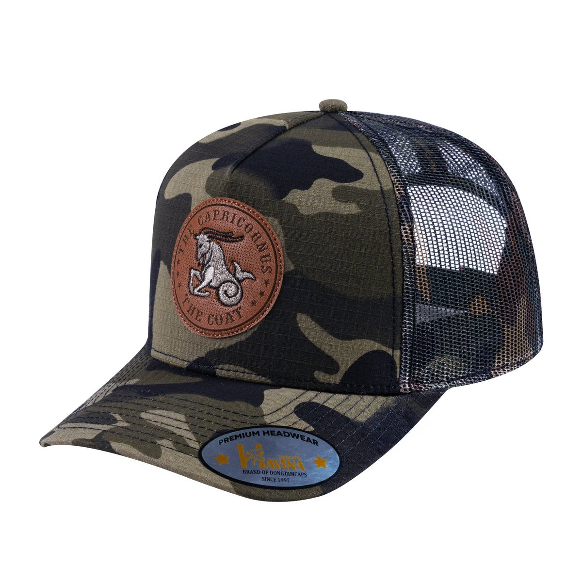V2 Embroidered And Laser-Engraved Capricorn Zodiac (December 22 - January 19) - 5 Panel Trucker Hat - Green Camo/Green Camo