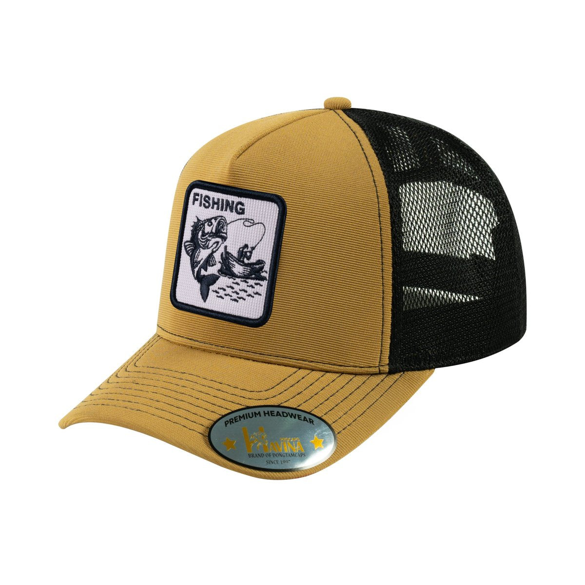 V2 Embroidered The Fishing - 5 Panel Trucker Hat - Light Brown/Black