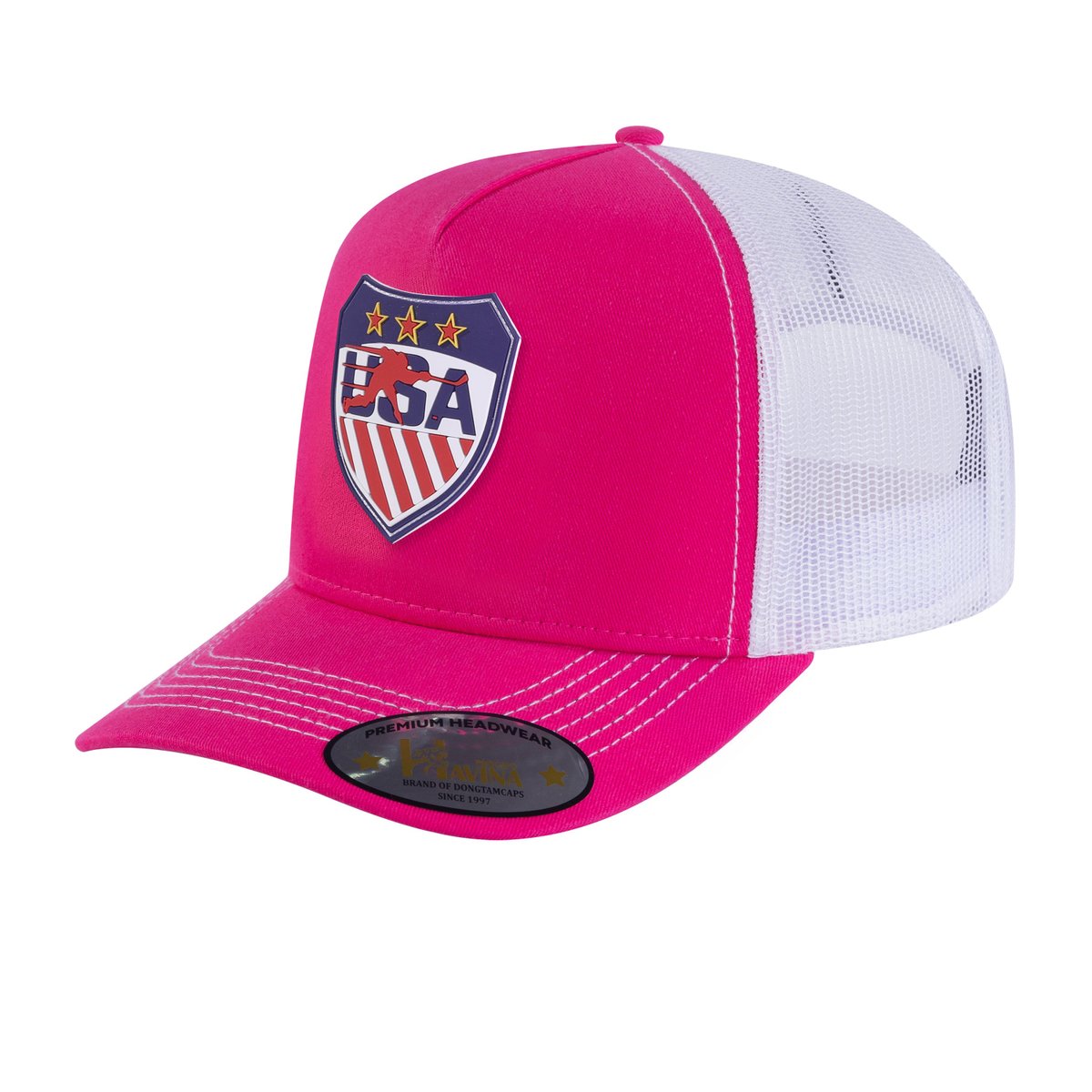 Embroidered Usa Hockey - 5 Panel Trucker Hat - Pink/White