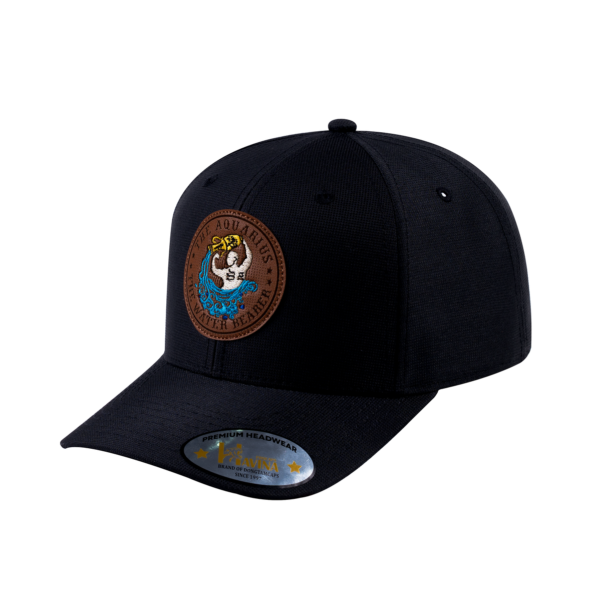 V2 Embroidered And Laser-Engraved Aquarius Zodiac (January 20 - February 18) - 6 Panel Baseball Cap - Black/Black