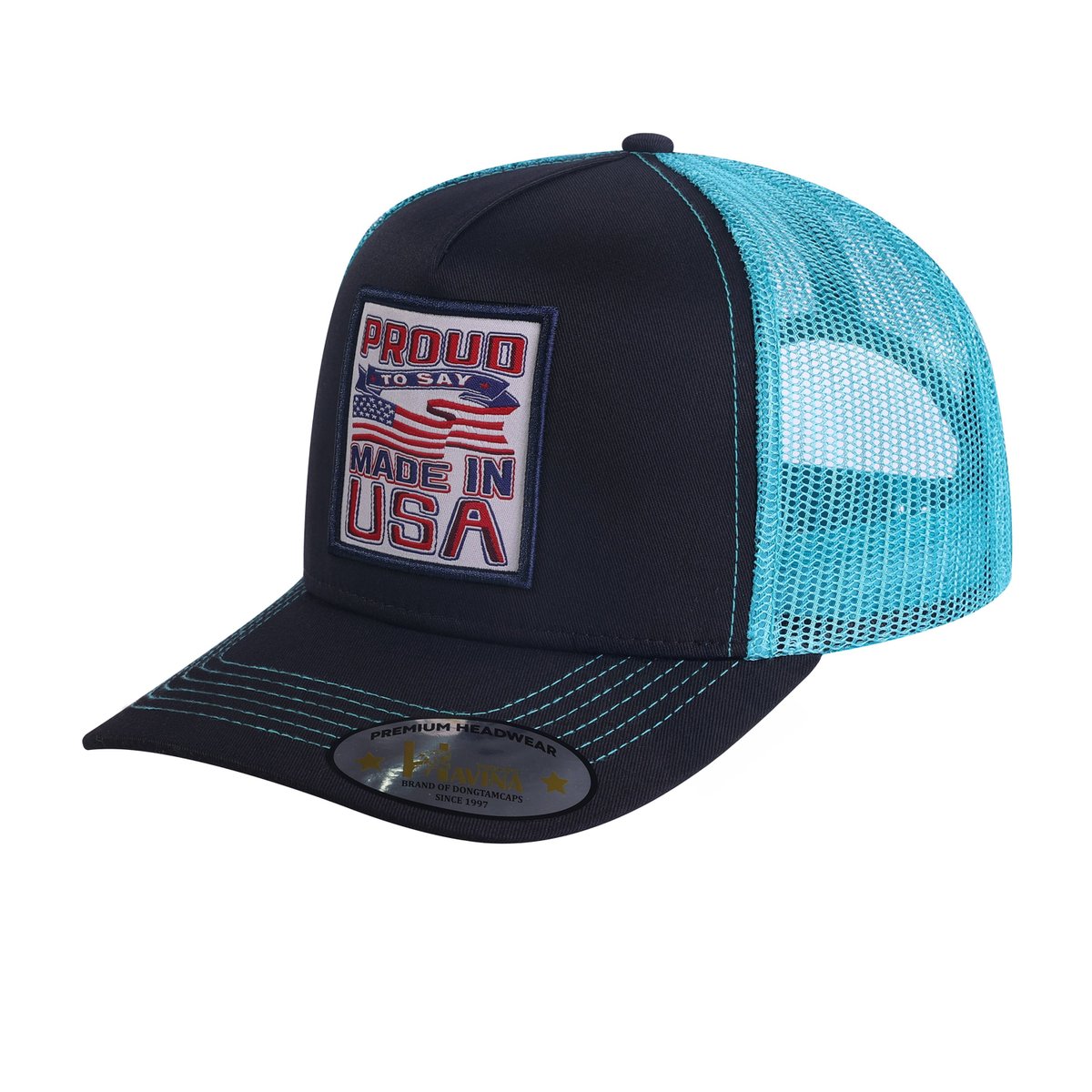 Embroidered Proud To Say Made In US - 5 Panel Trucker Hat - Black/Blue