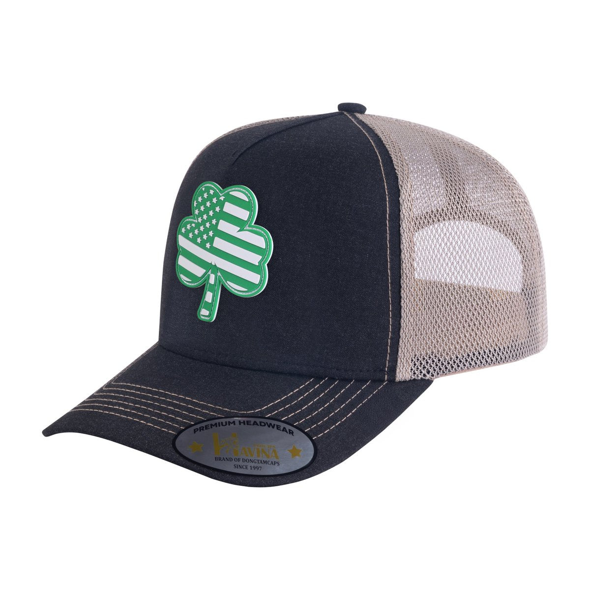 St. Patrick'S Day Four Leaf Shamrock - Sombrero de camionero de cinco paneles - Negro - Bht