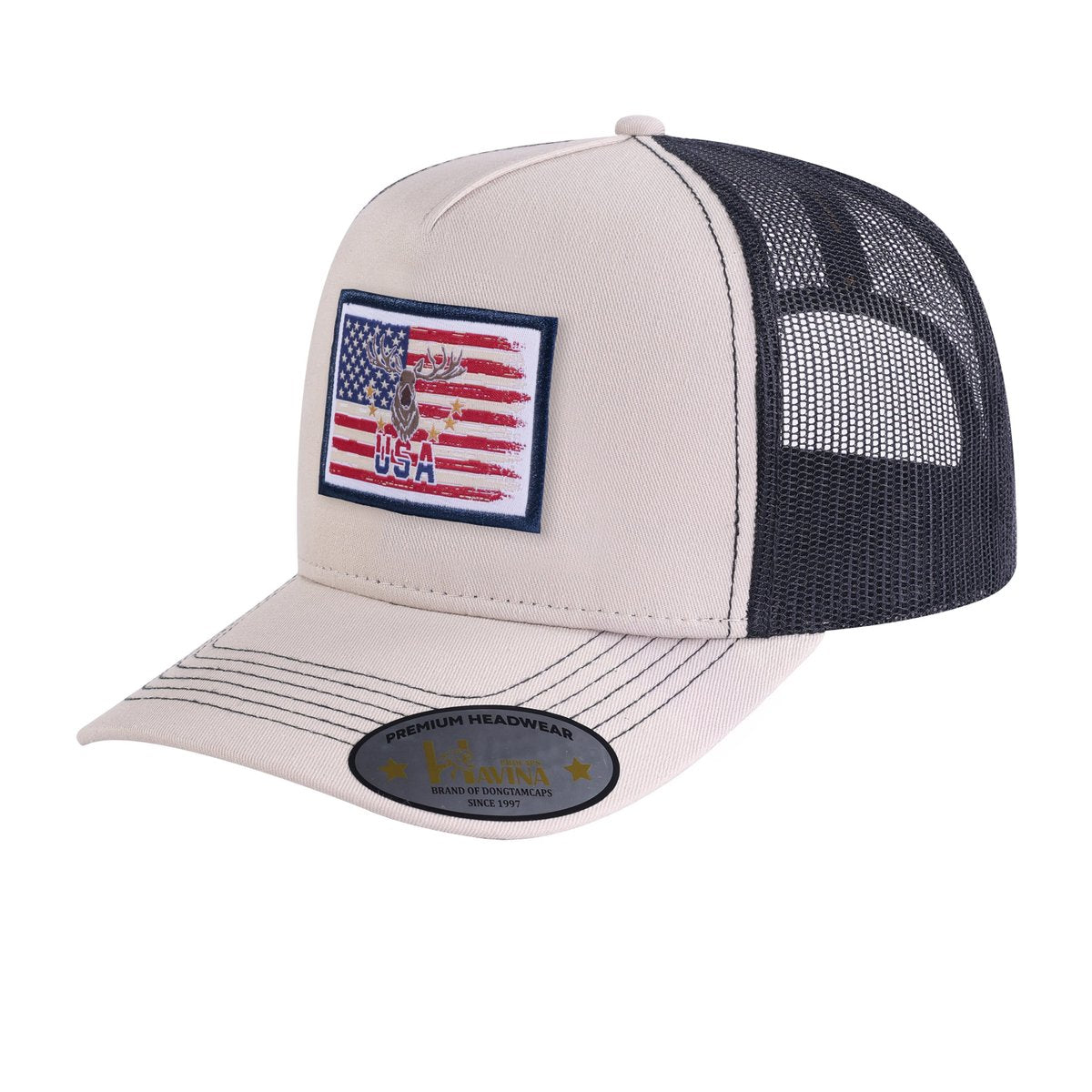 Usa Deer Hunter - Sombrero de camionero de cinco paneles - Beige 1204 - Be1204Tc