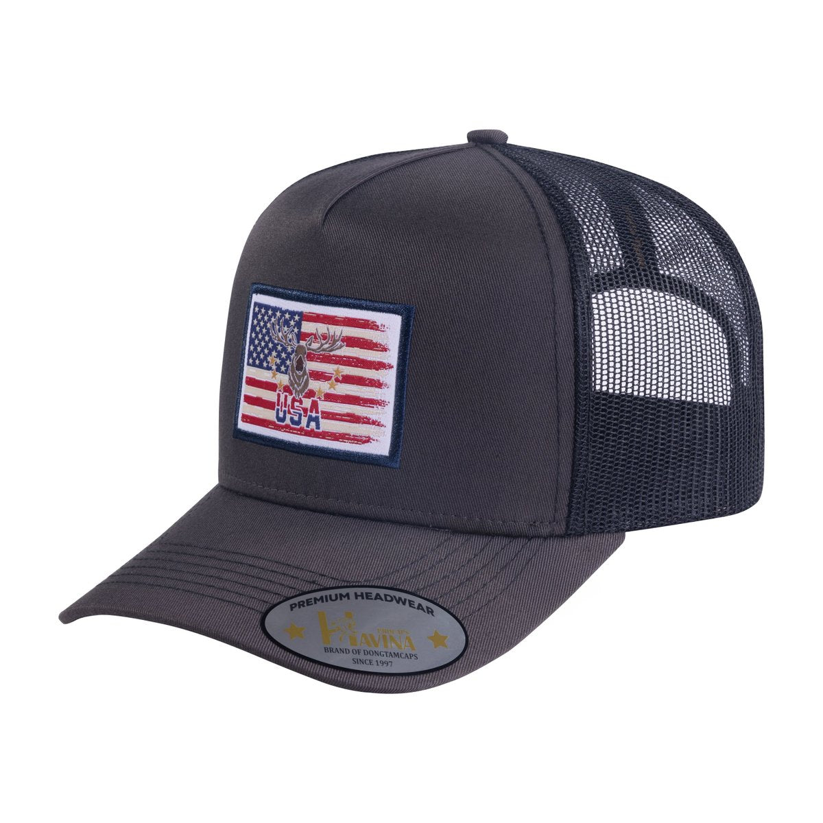 Usa Deer Hunter - Gorra Trucker de cinco paneles - Gris oscuro 2204 - Dg2204Tc