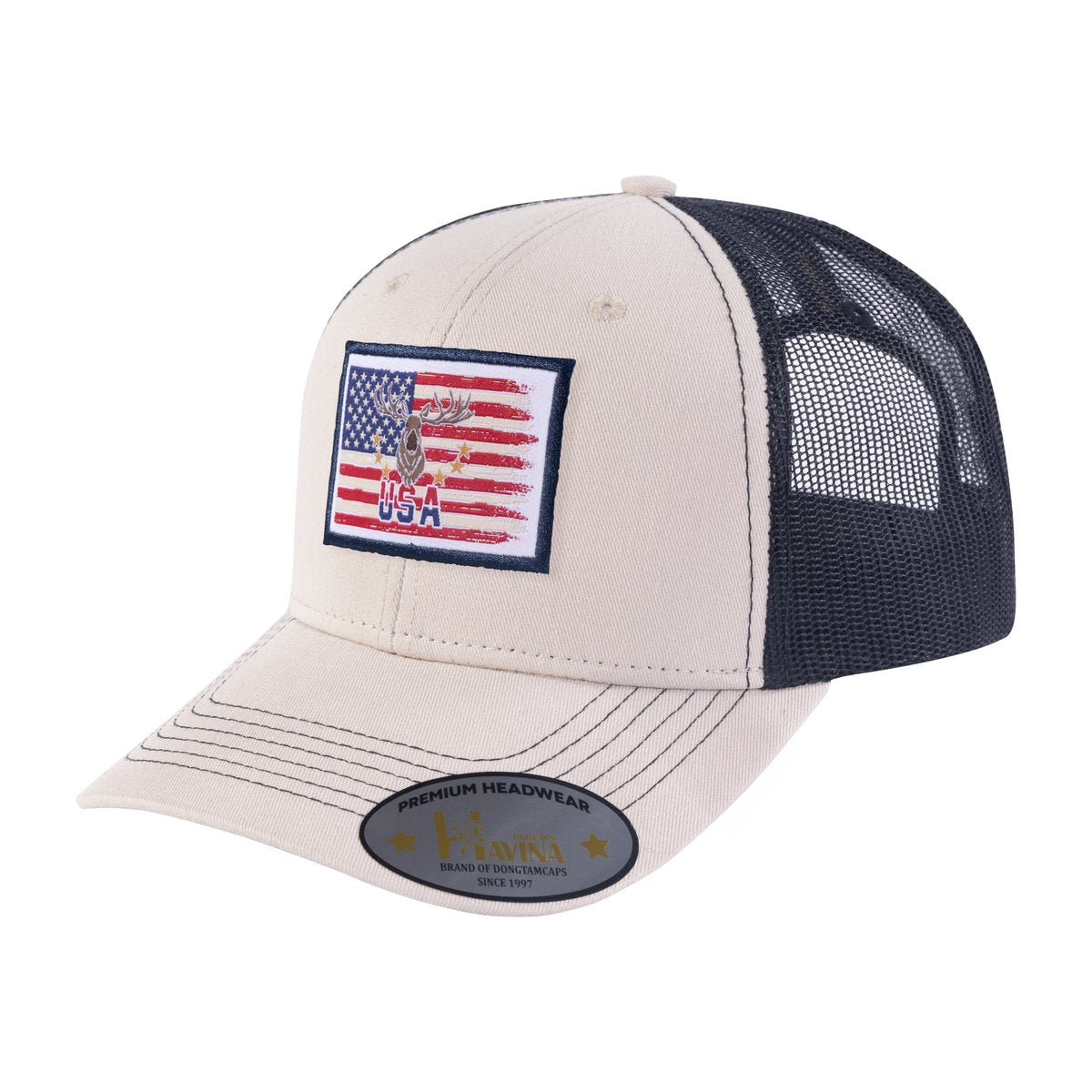 Usa Deer Hunter - Sombrero de camionero de seis paneles - Beige 1204 - Be1204Tc