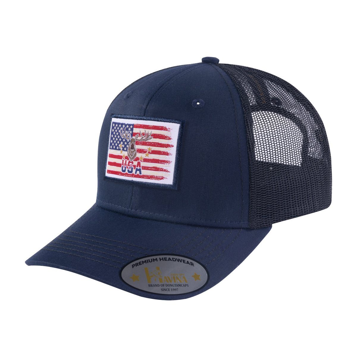 Usa Deer Hunter - Gorra de camionero de seis paneles - Azul marino - Ntc