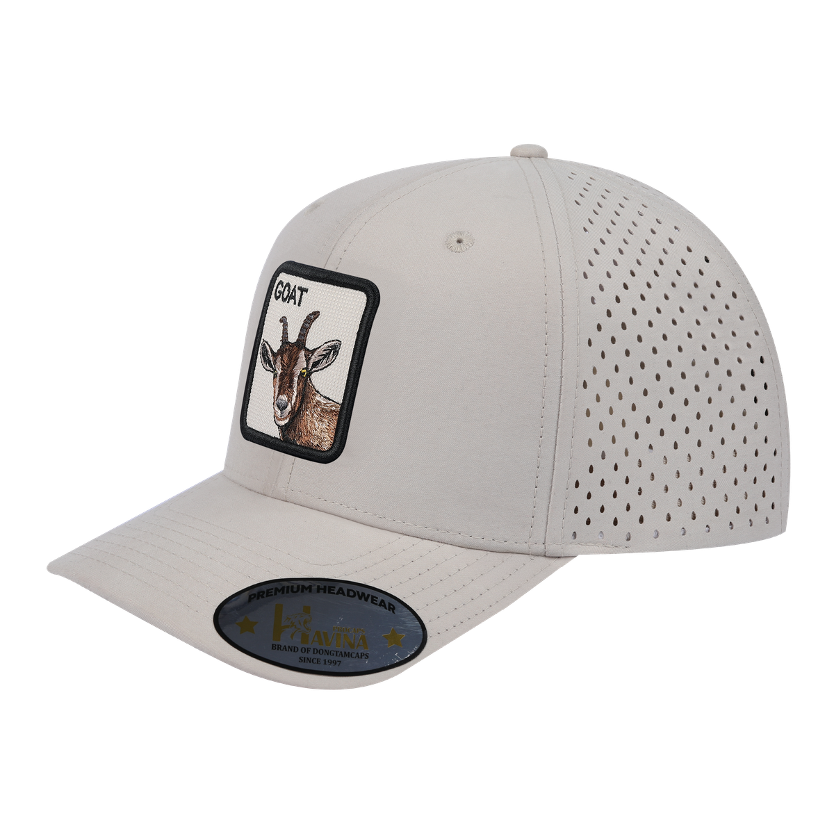 Embroidered The Goat - 6 Panel Microfiber Laser hole Trucker Hat - Beige/Beige