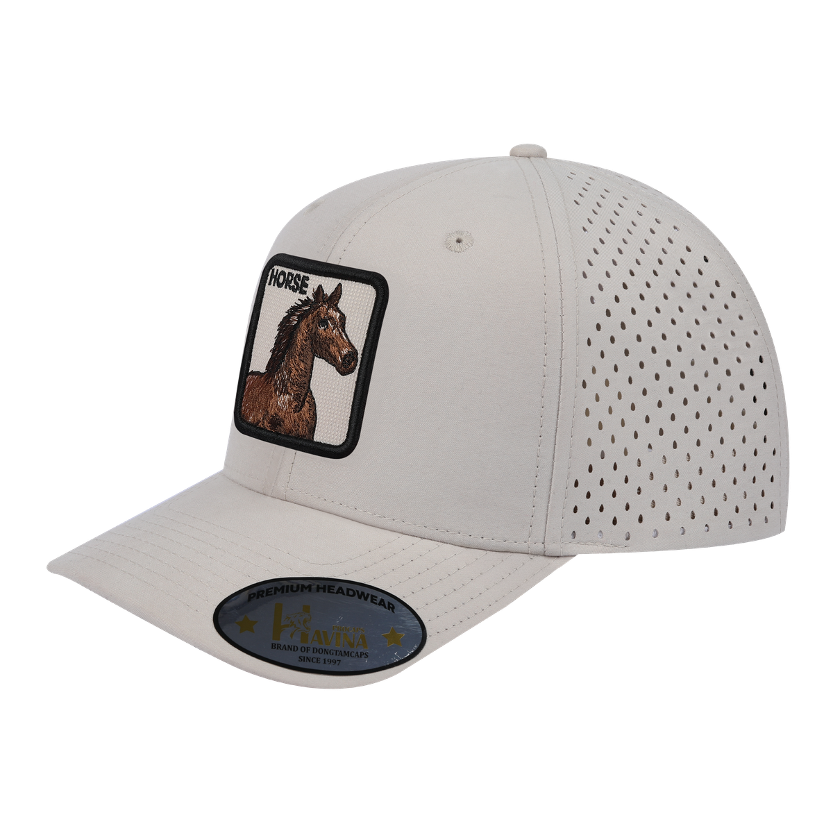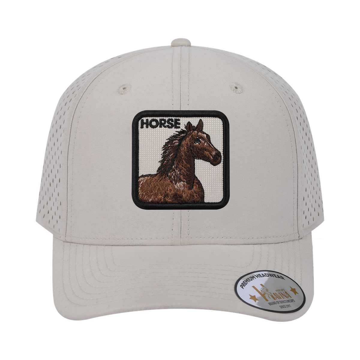 Embroidered The Horse - 6 Panel Microfiber Laser hole Trucker Hat - Beige/Beige