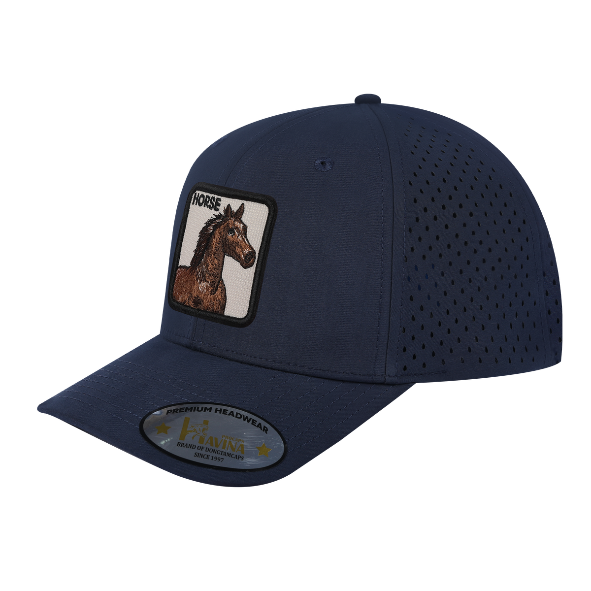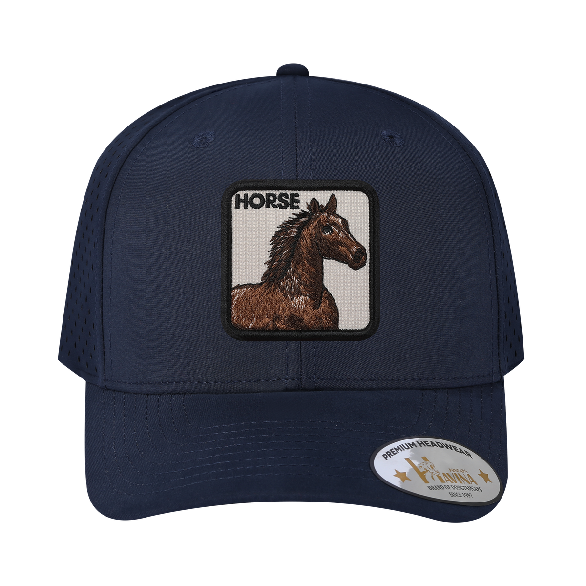 Embroidered The Horse - 6 Panel Microfiber Laser hole Trucker Hat - Navy/Navy