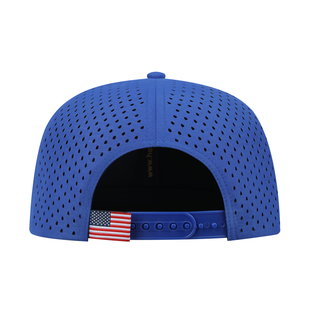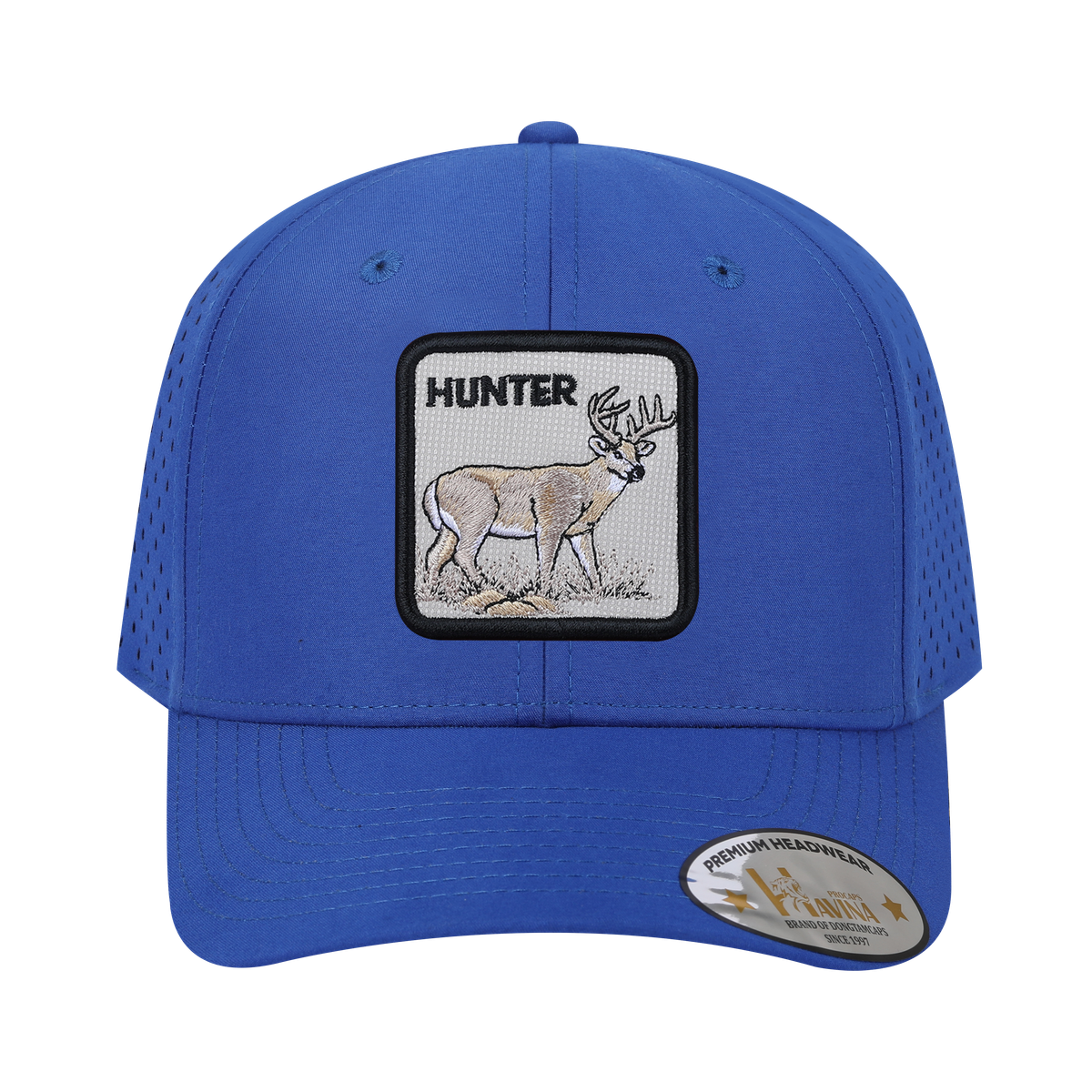 Embroidered The Hunter - 6 Panel Microfiber Laser hole Trucker Hat - Royal Blue/Royal Blue