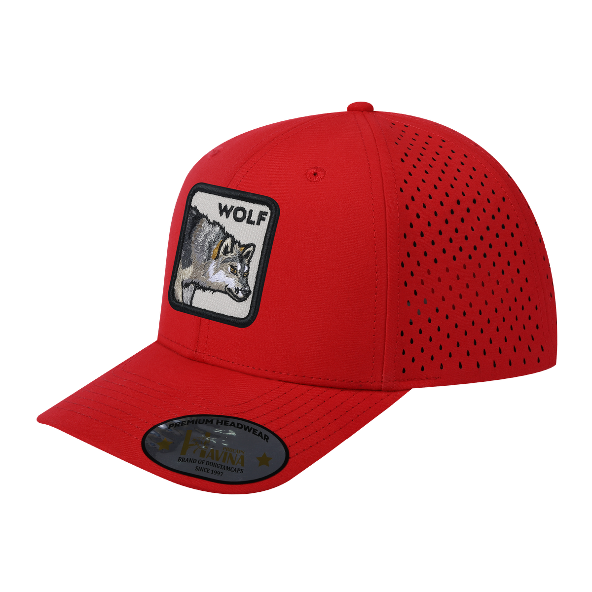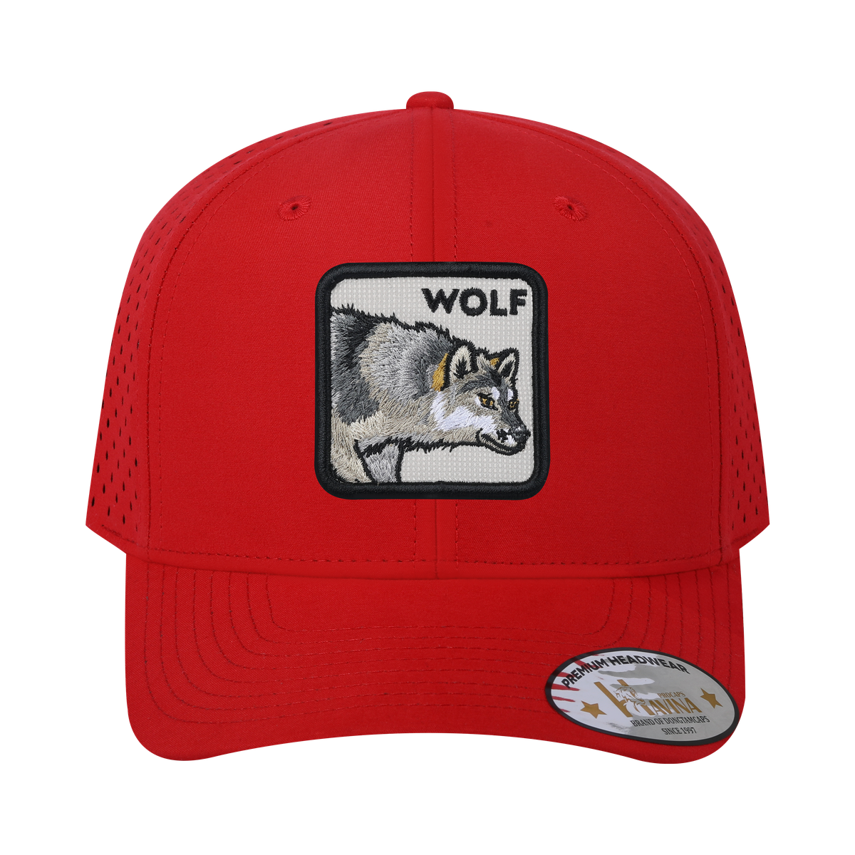 Embroidered The Wolf - 6 Panel Microfiber Laser hole Trucker Hat - Red/Red