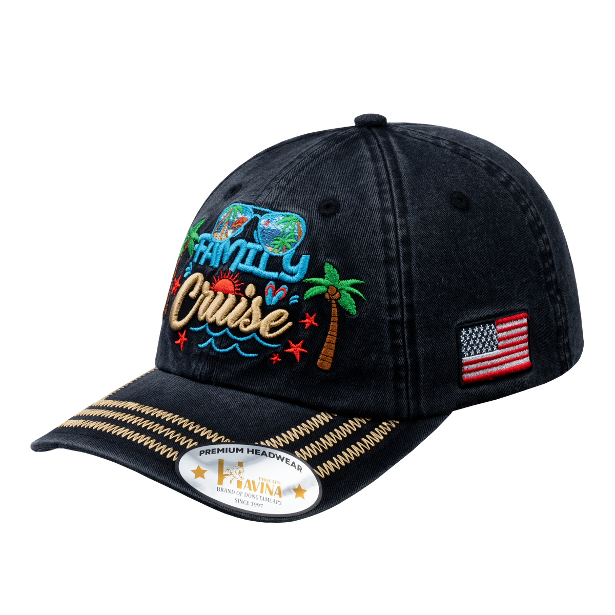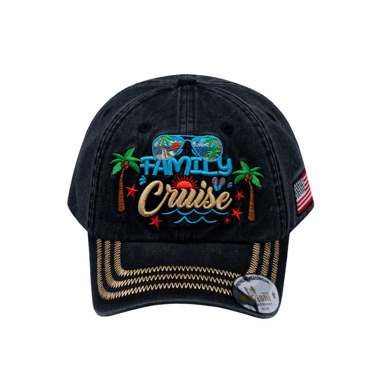 Embroidered Family Cruise - Traveling - 6 Panel Baseball Cap - Black - Zig Zag