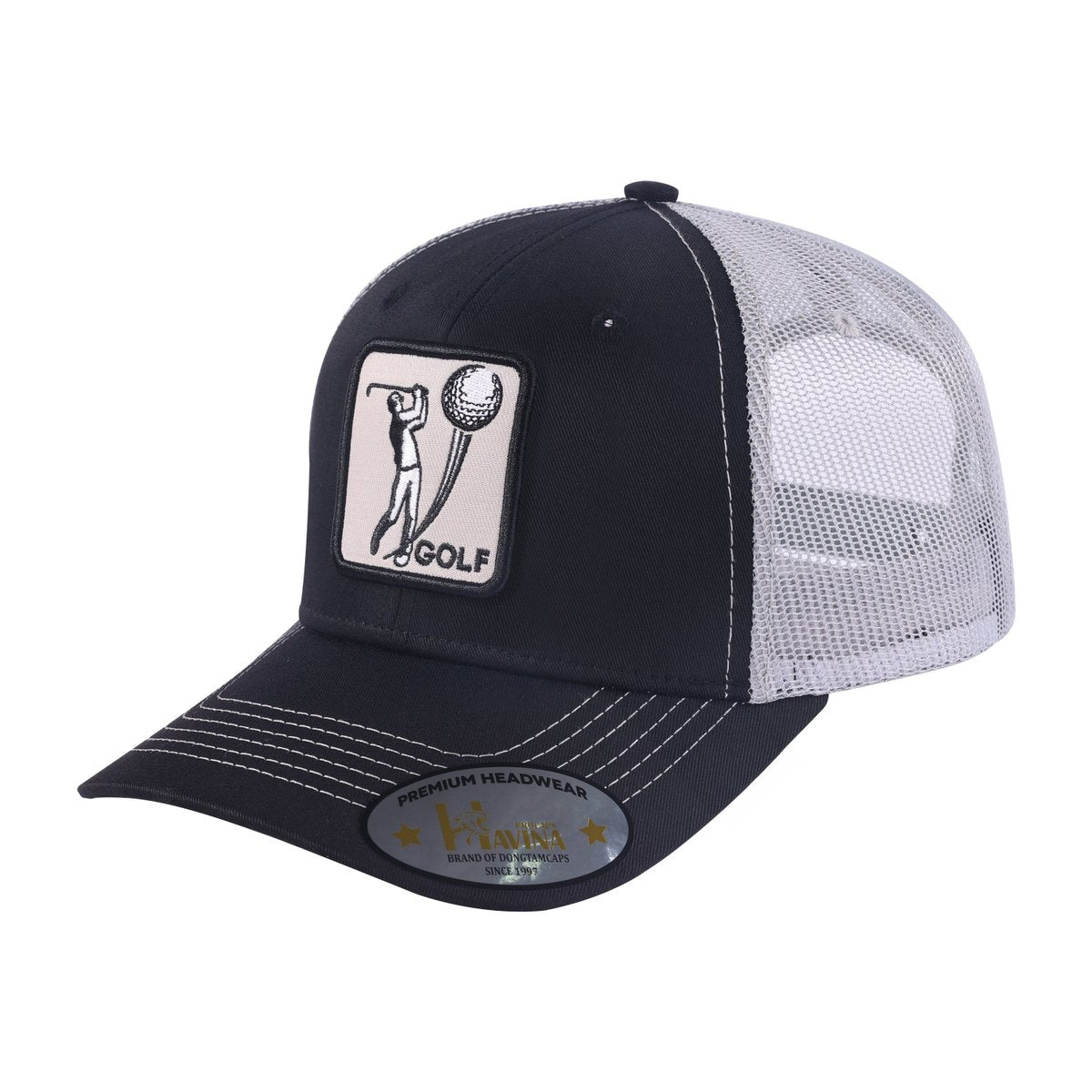Embroidered Golf - 6 Panel Trucker Hat - Black/Light Grey