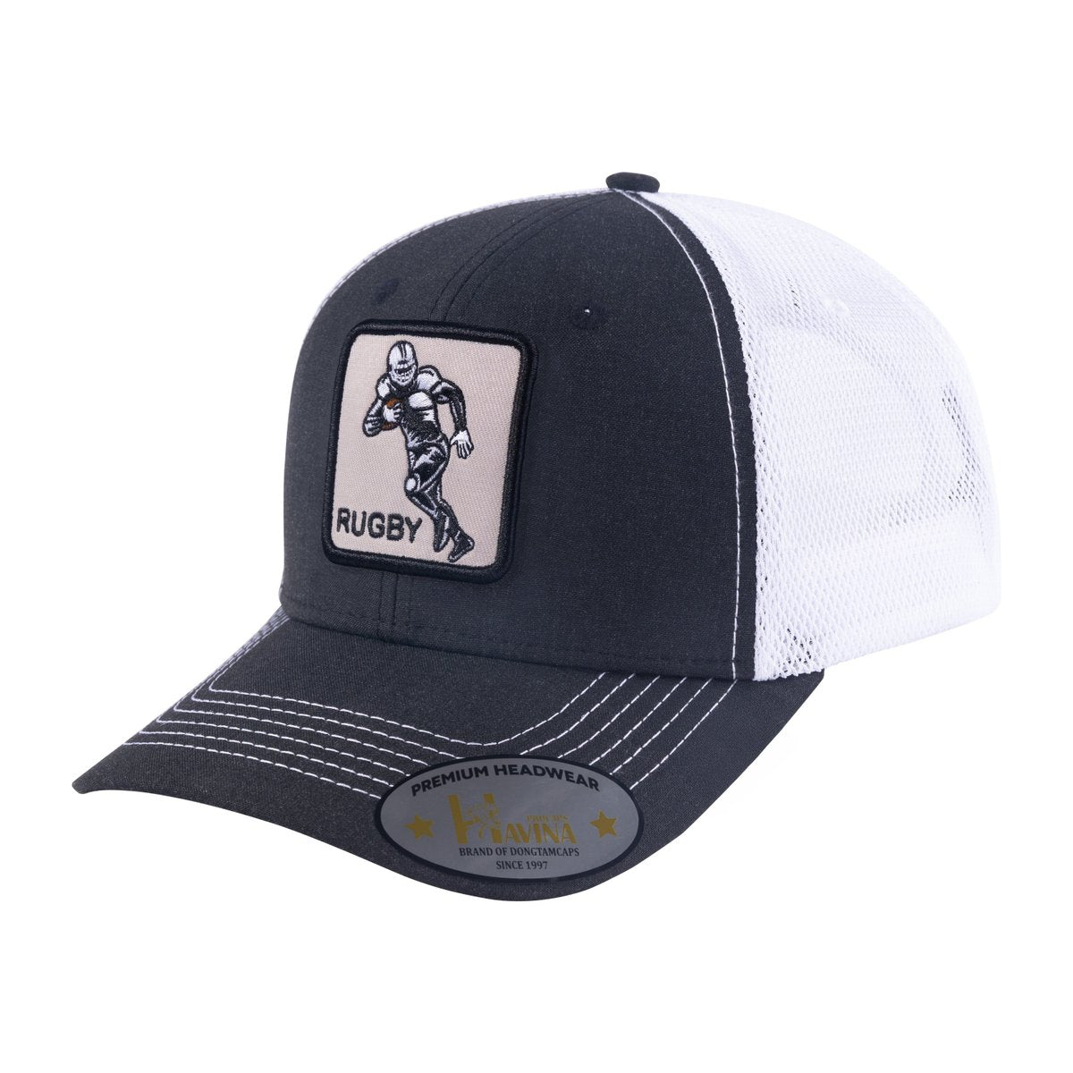 Embroidered Rugby/Football - 6 Panel Trucker Hat - Black/White