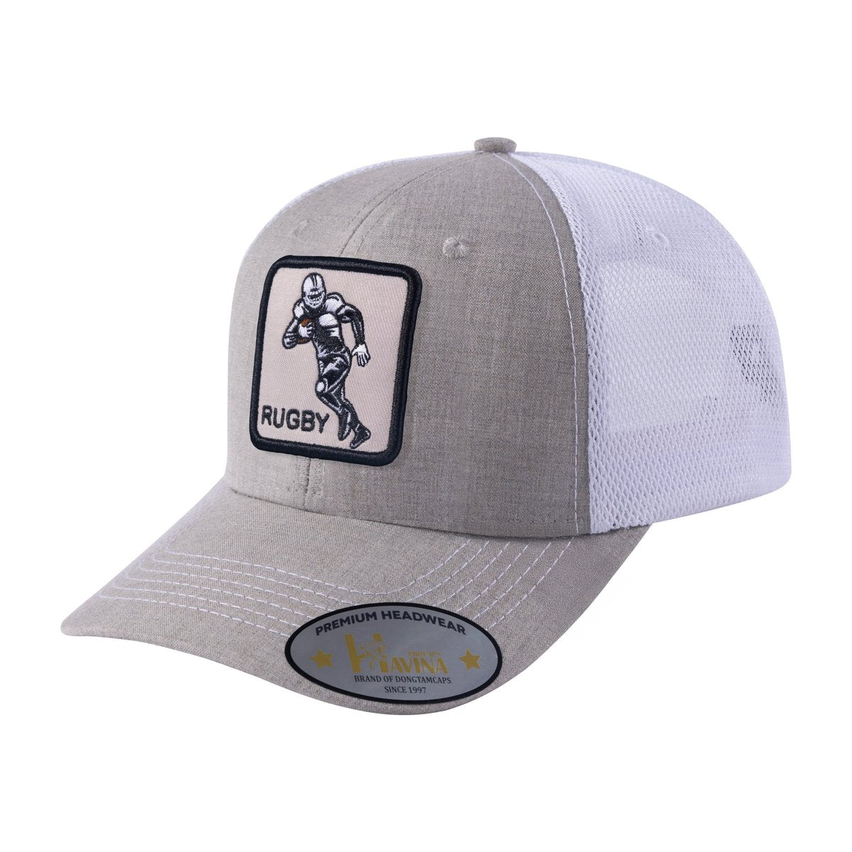 Embroidered Rugby/Football - 6 Panel Trucker Hat - Khaki/White
