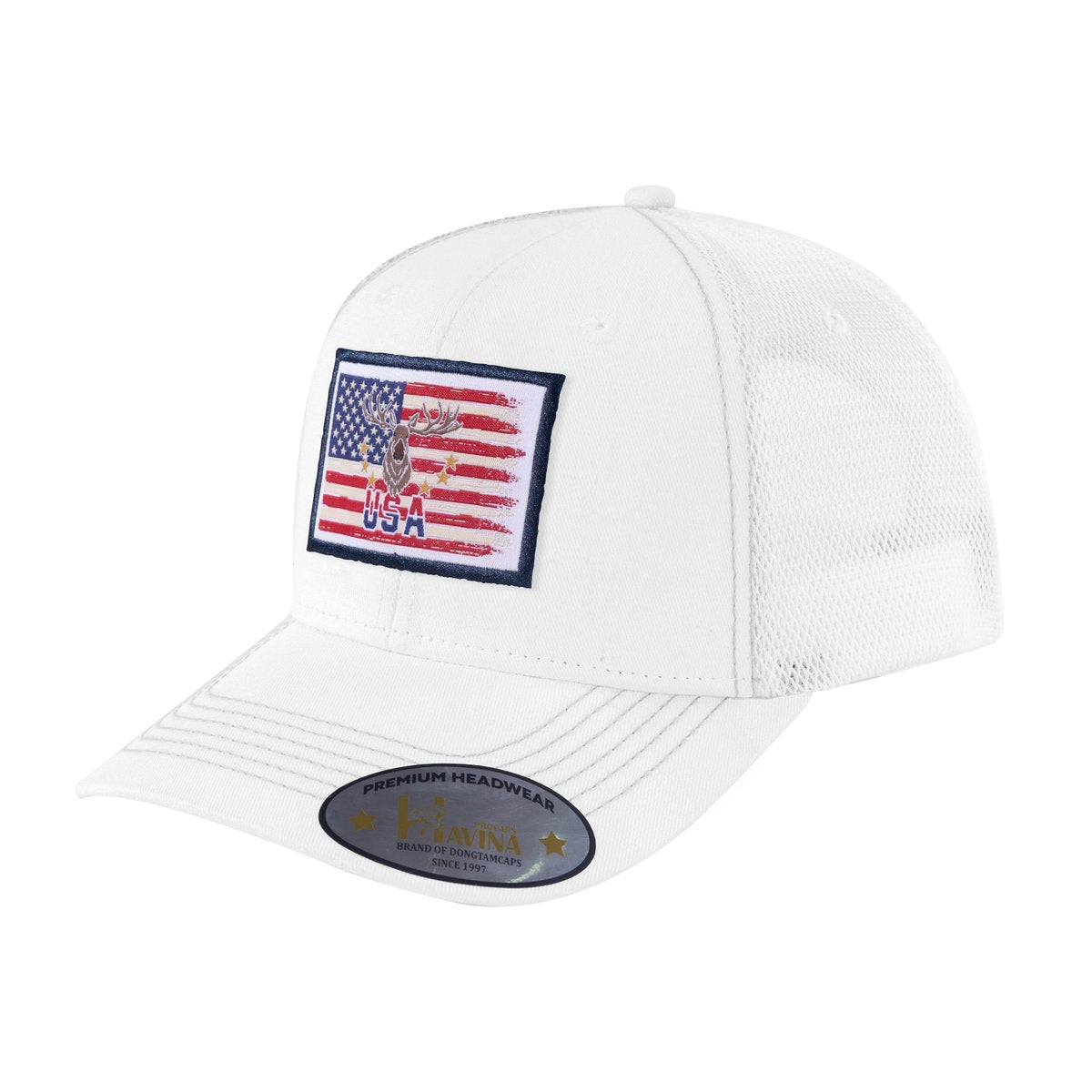 Embroidered US Deer Hunter - 6 Panel Trucker Hat - White/White