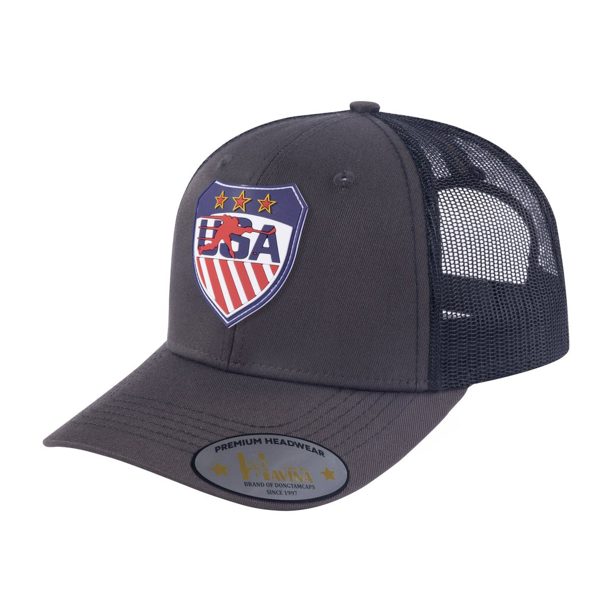Embroidered US Loving Hockey - 6 Panel Trucker Hat - Dark Grey/Black
