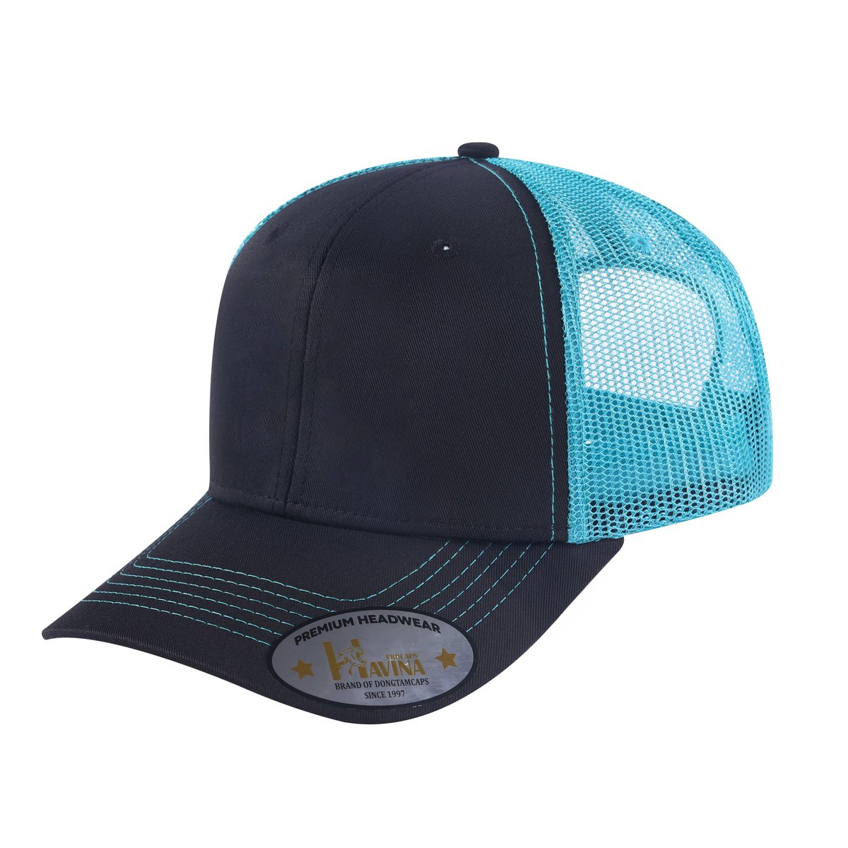 Blank - 6 Panel Trucker Hat - Black/Blue