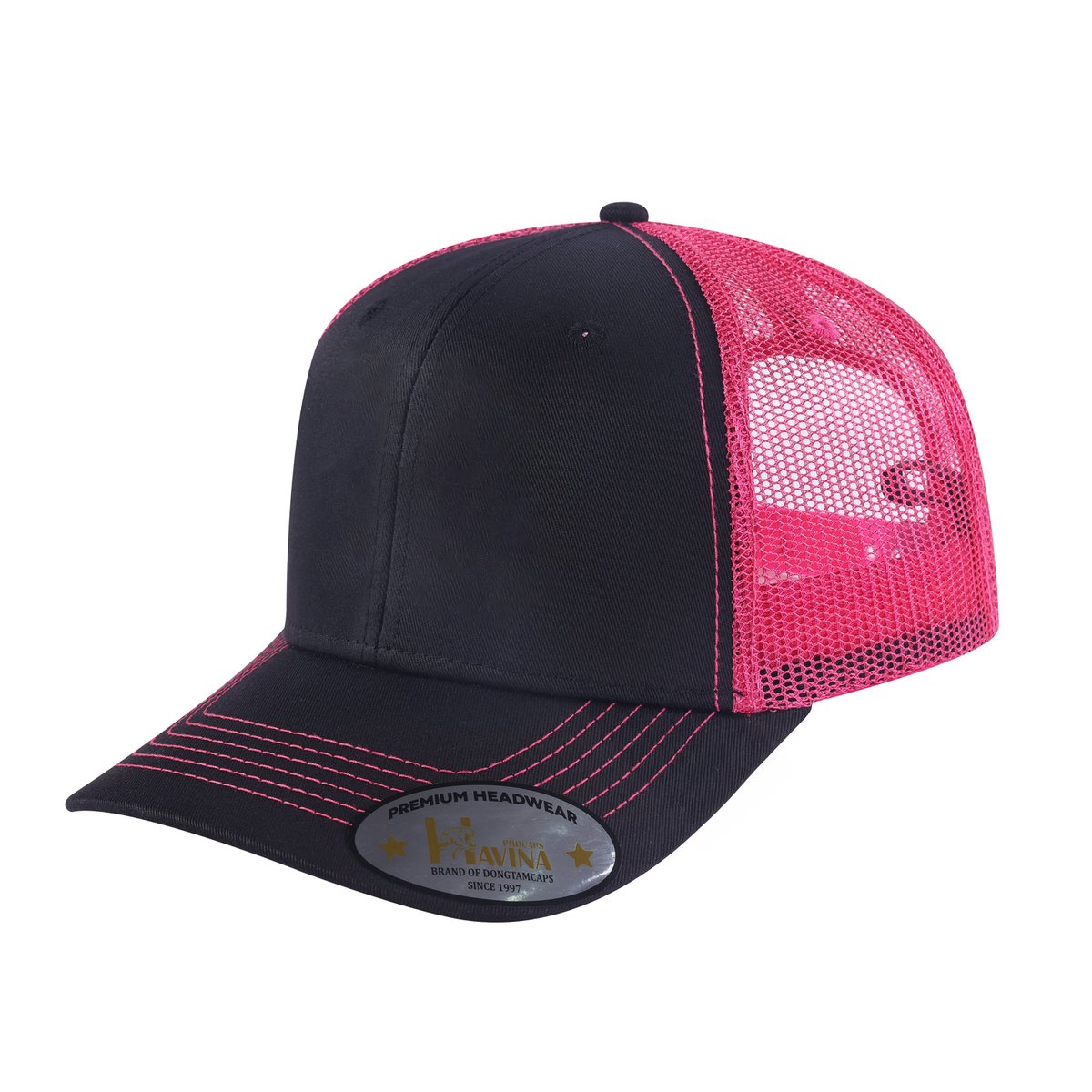Blank - 6 Panel Trucker Hat - Black/Pink