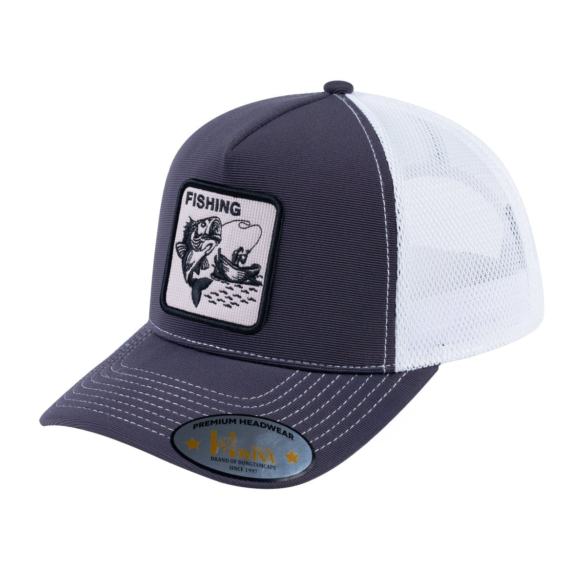 V2 Embroidered The Fishing - 5 Panel Trucker Hat - Dark Grey/White
