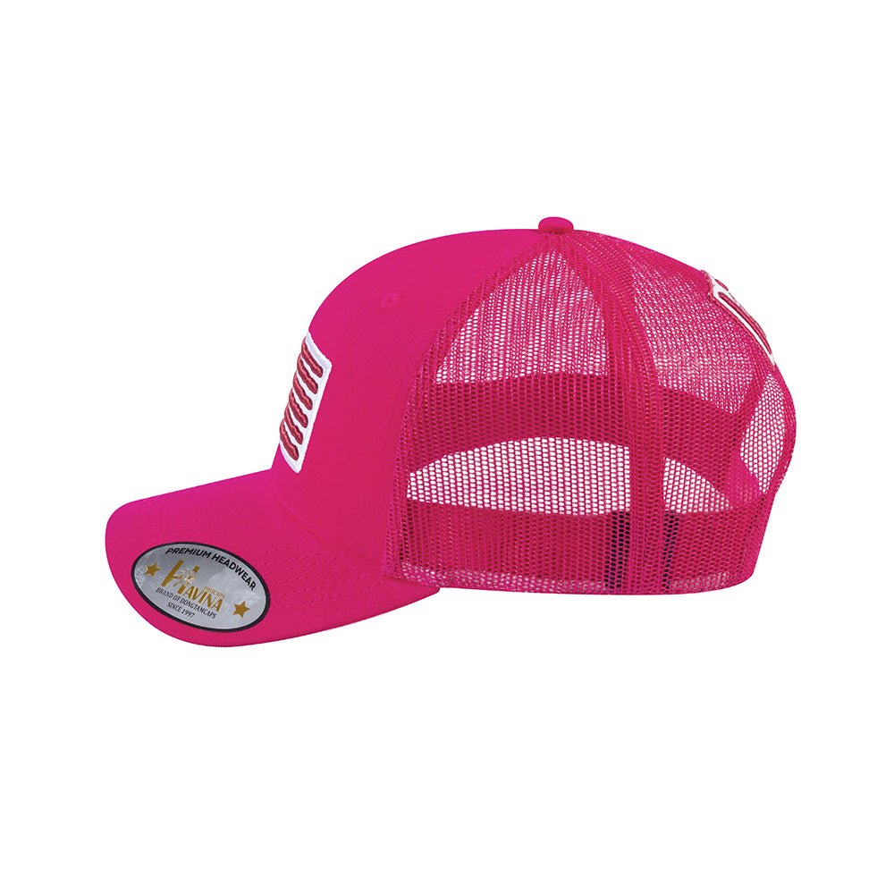 Embroidered The Us Flag - 6 Panel Trucker Hat - Pink/Pink - Classic