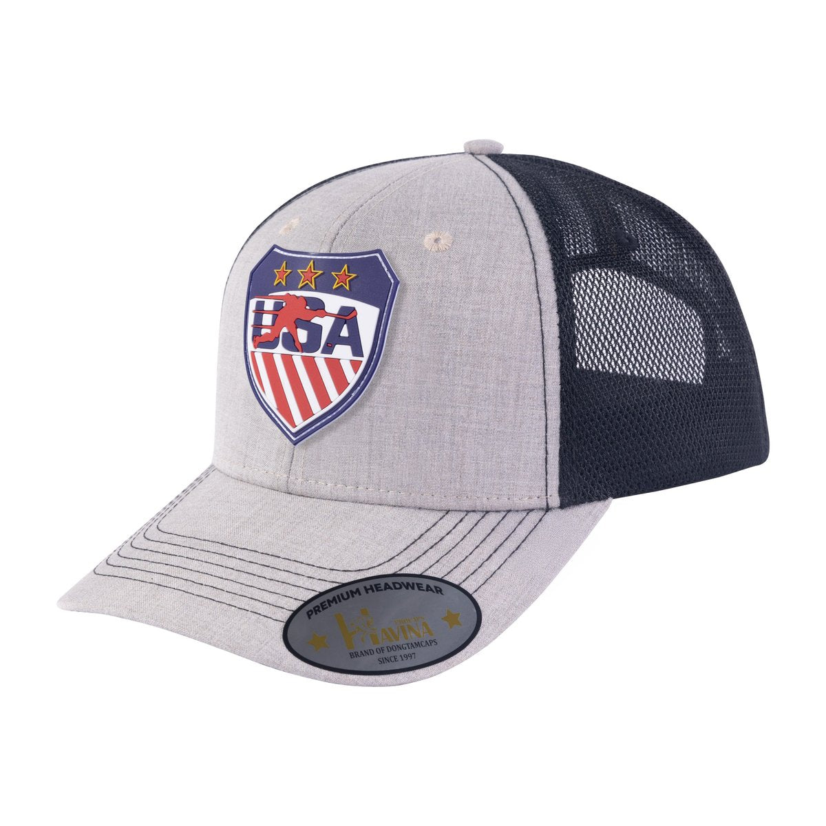 Embroidered Usa Hockey - 6 Panel Trucker Hat - Khaki/Black