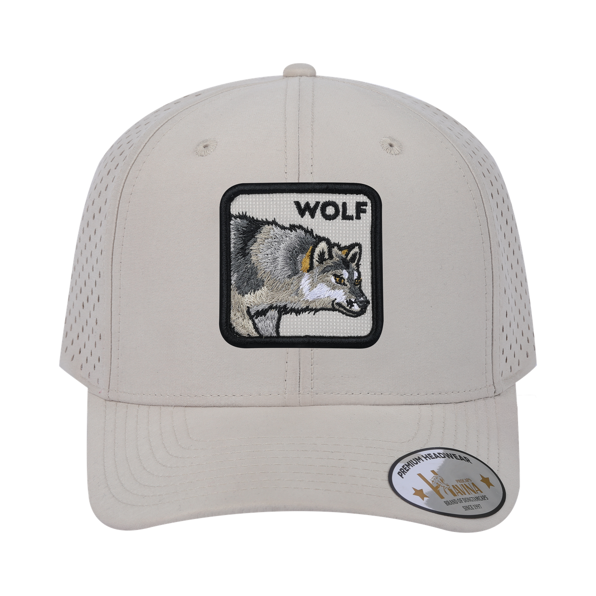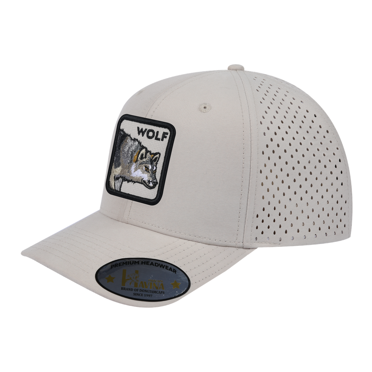 Embroidered The Wolf - 6 Panel Microfiber Laser hole Trucker Hat - Beige/Beige