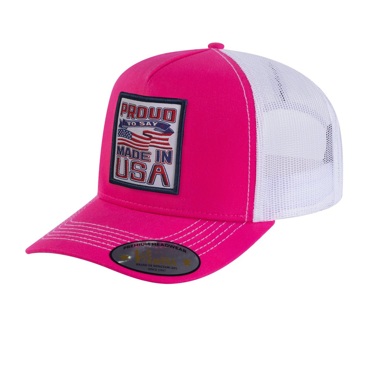 Embroidered Proud To Say Made In Usa - 5 Panel Trucker Hat - Pink/White