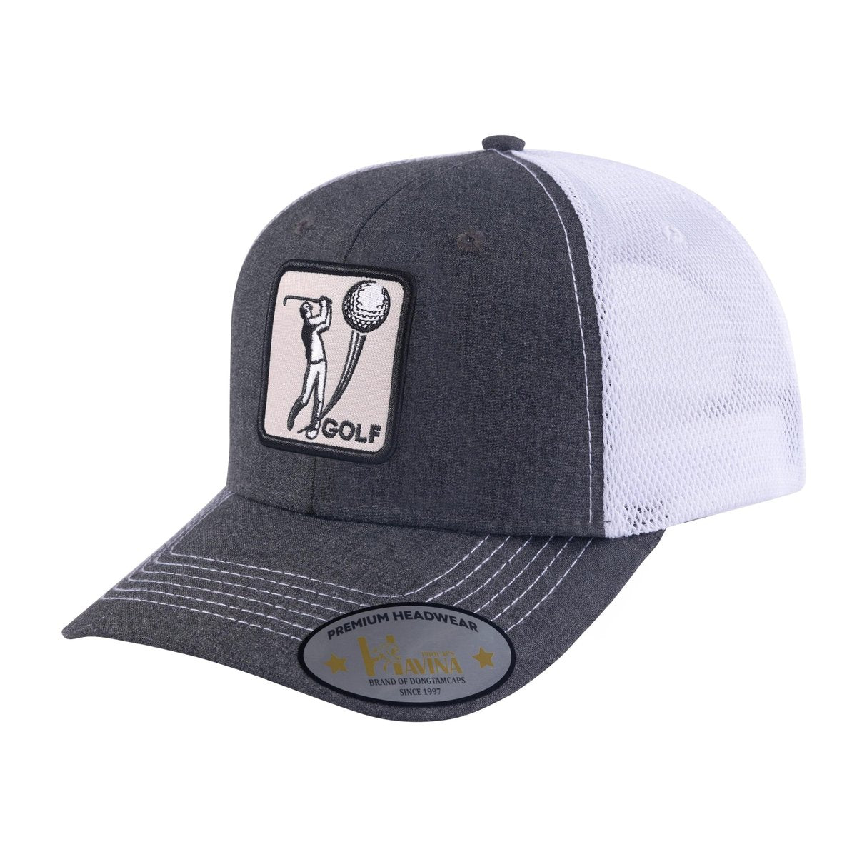 Embroidered Golf - 6 Panel Trucker Hat - Dark Grey/White