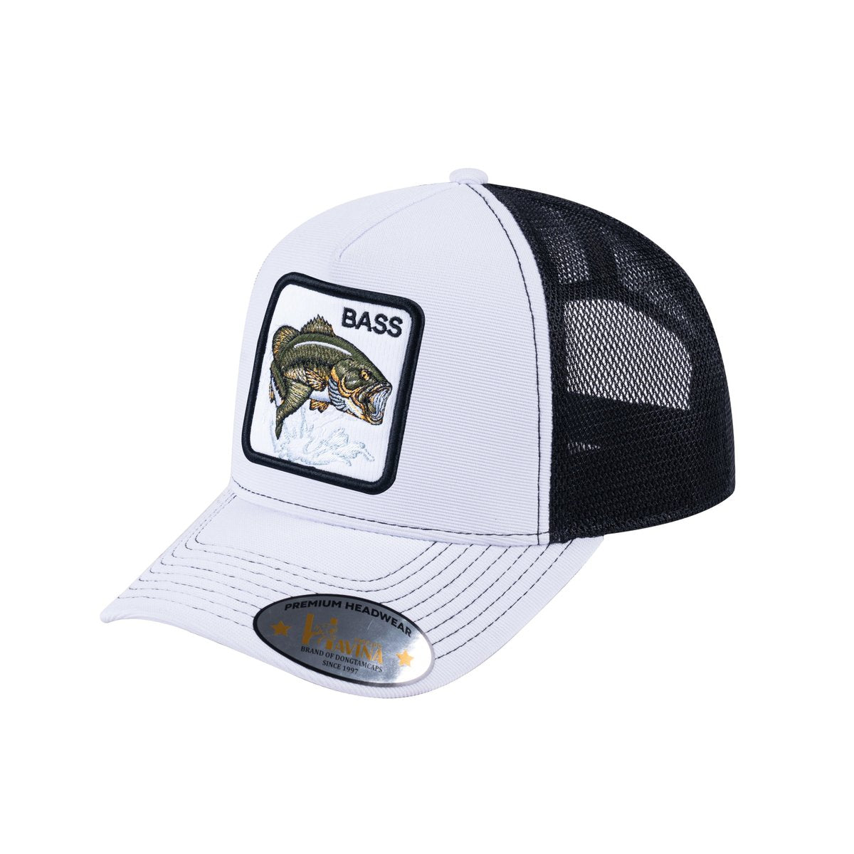 V2 Embroidered The Bass - 5 Panel Trucker Hat - White/Black
