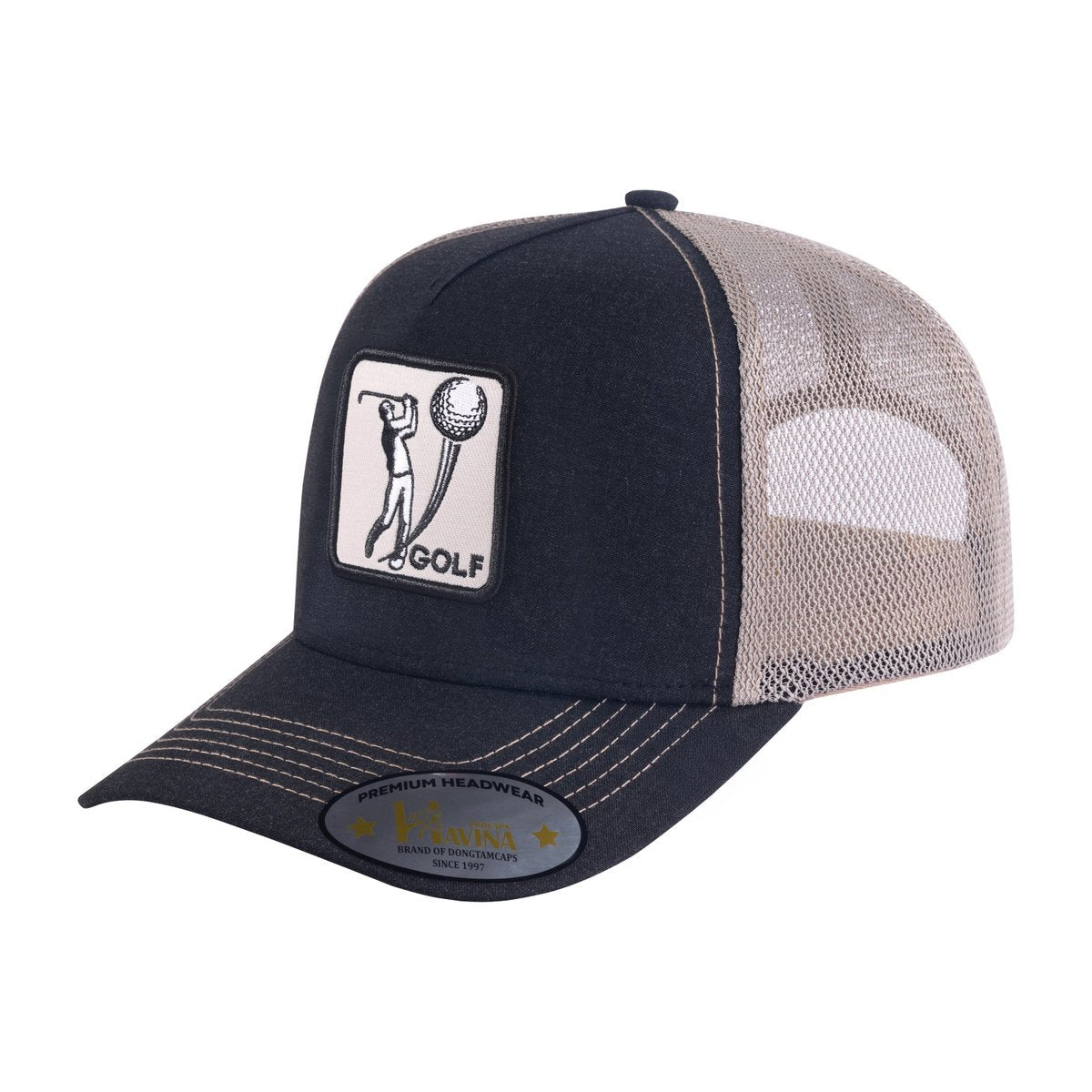 Embroidered Golf - 5 Panel Trucker Hat - Black/Light Grey