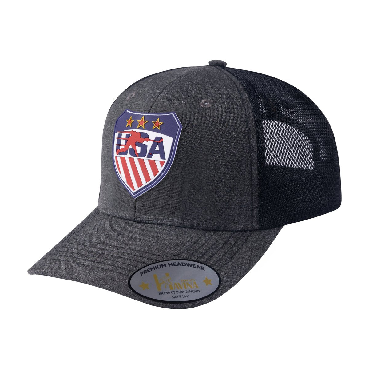 Embroidered Usa Hockey - 6 Panel Trucker Hat - Dark Grey/Black