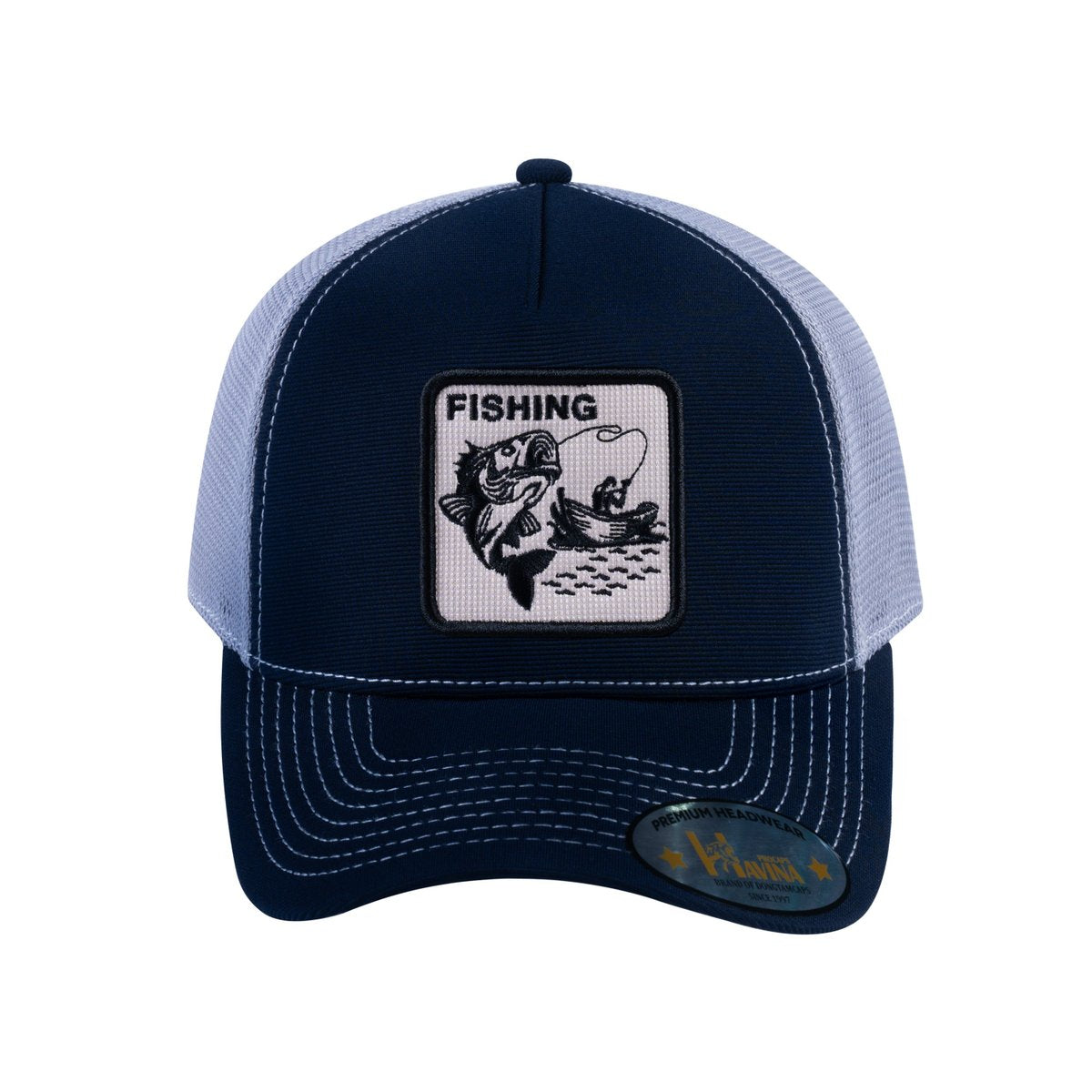V2 Embroidered The Fishing - 5 Panel Trucker Hat - Navy/Light Grey
