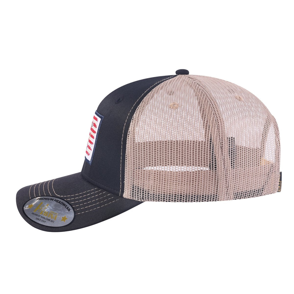 Embroidered US Deer Hunter - 6 Panel Trucker Hat - Black - Black-Lg