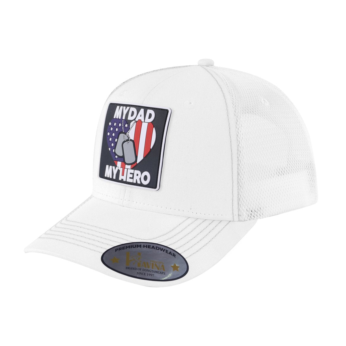 Embroidered My Dad My Hero - 6 Panel Trucker Hat - White/White