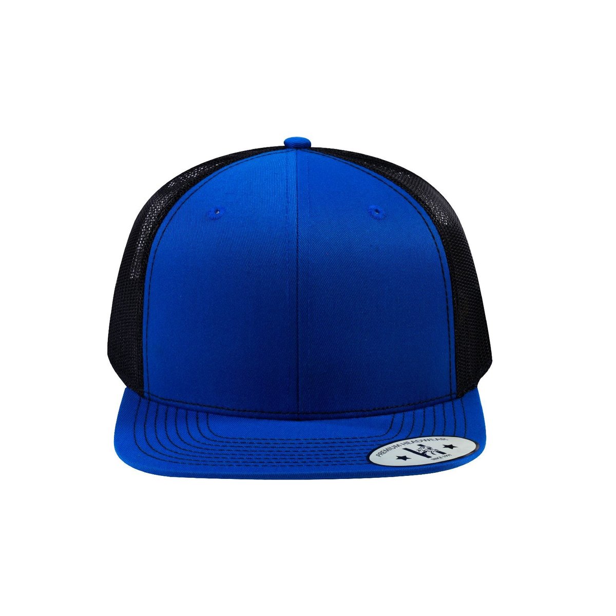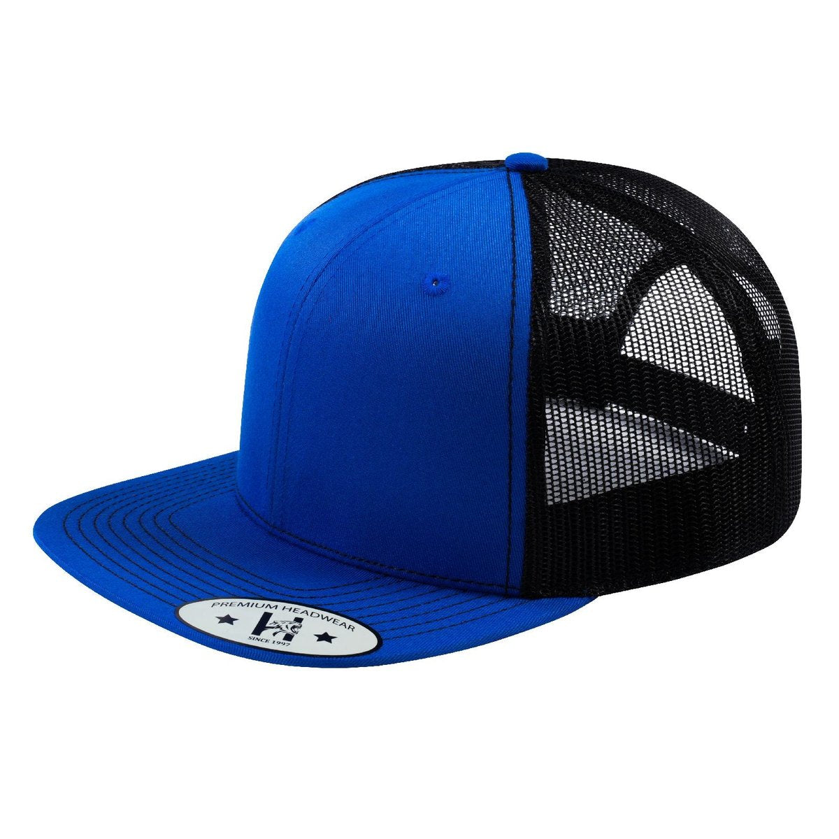 Blank - 6 Panel Snapback Flat Bill Trucker Hat - Royal Blue