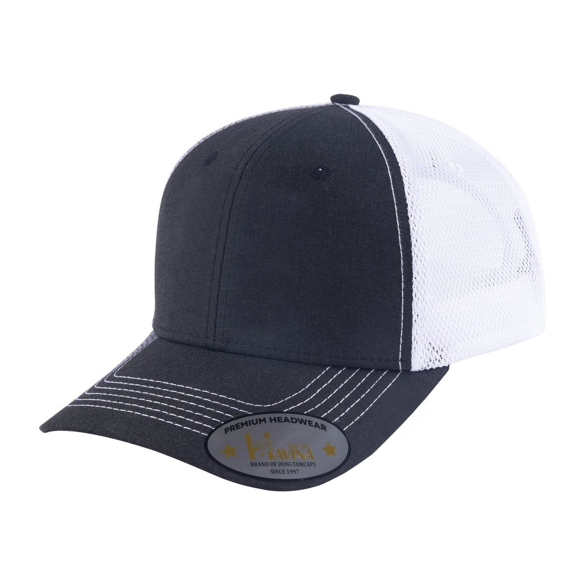 Blank - 6 Panel Trucker Hat - Black/White